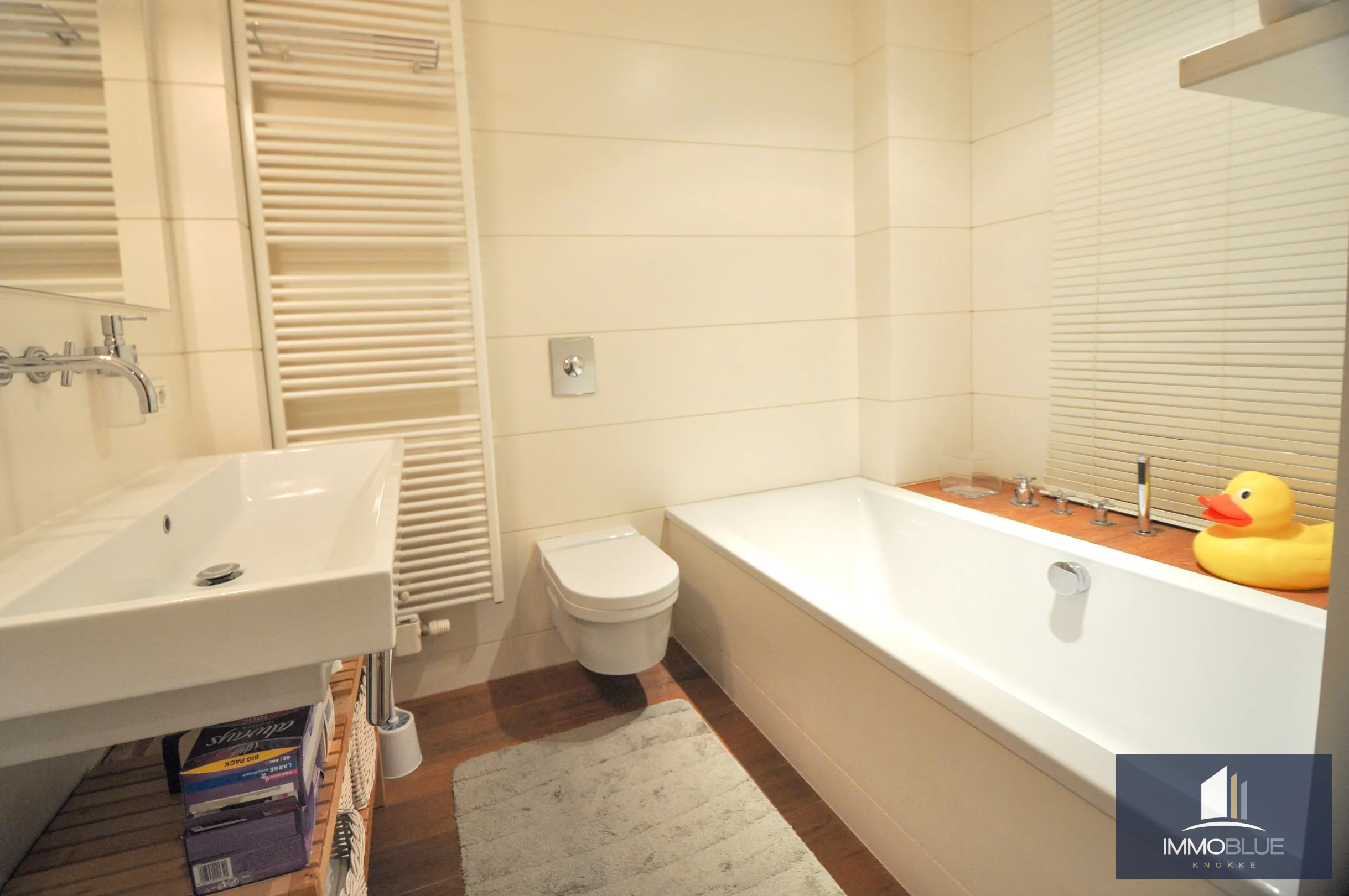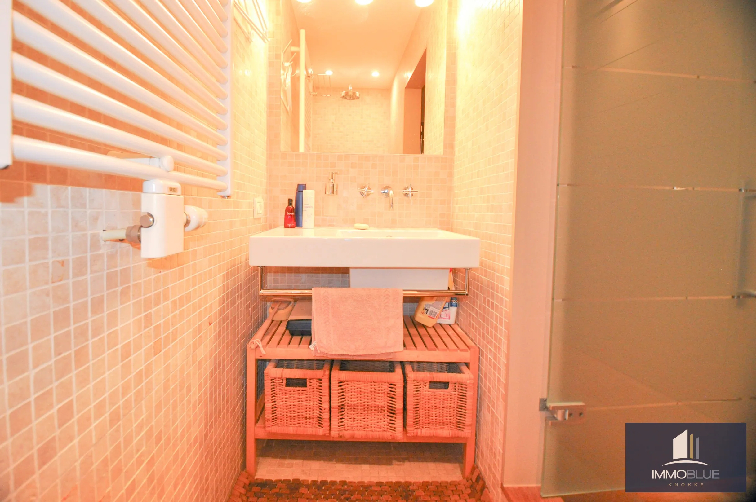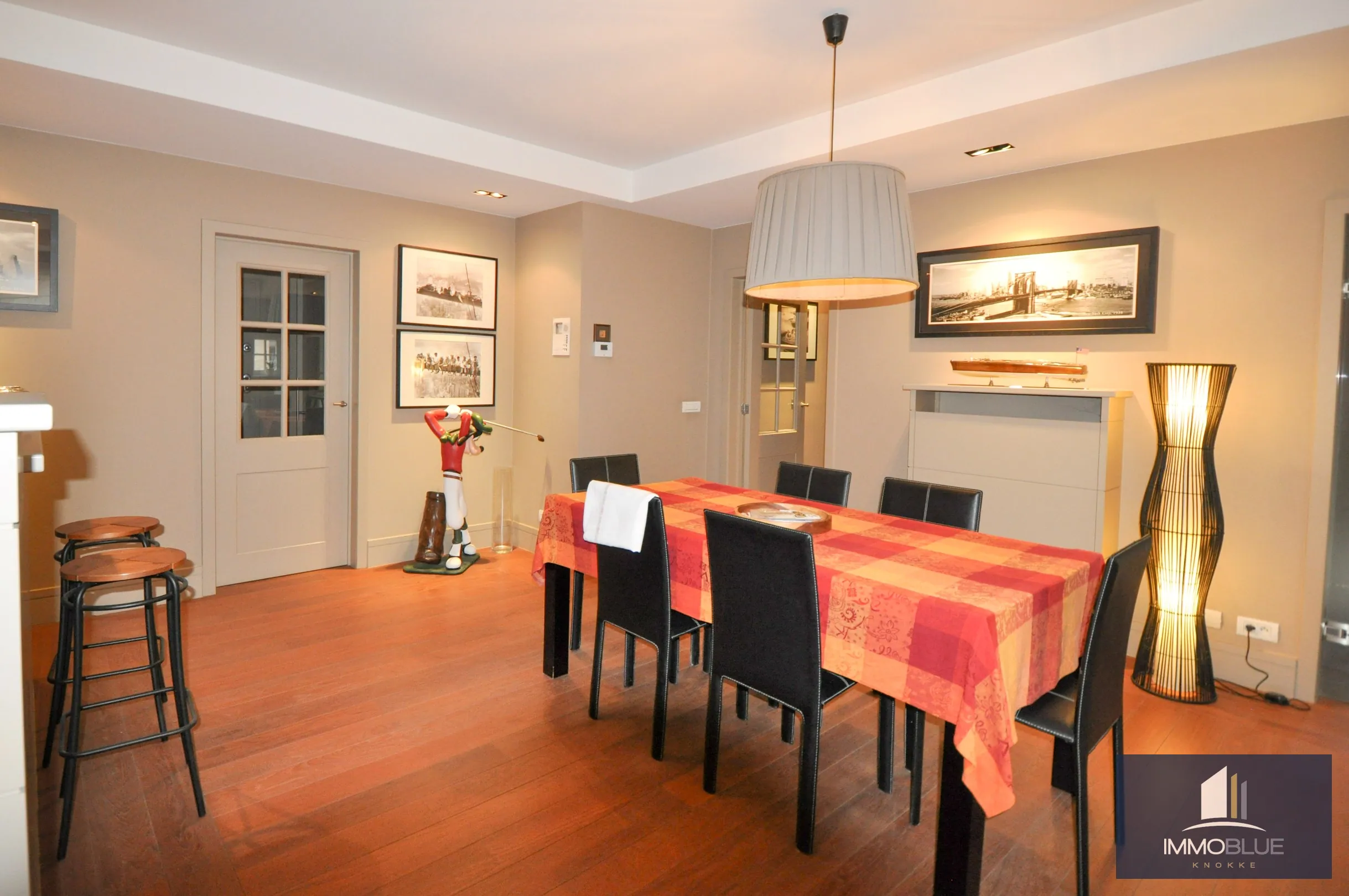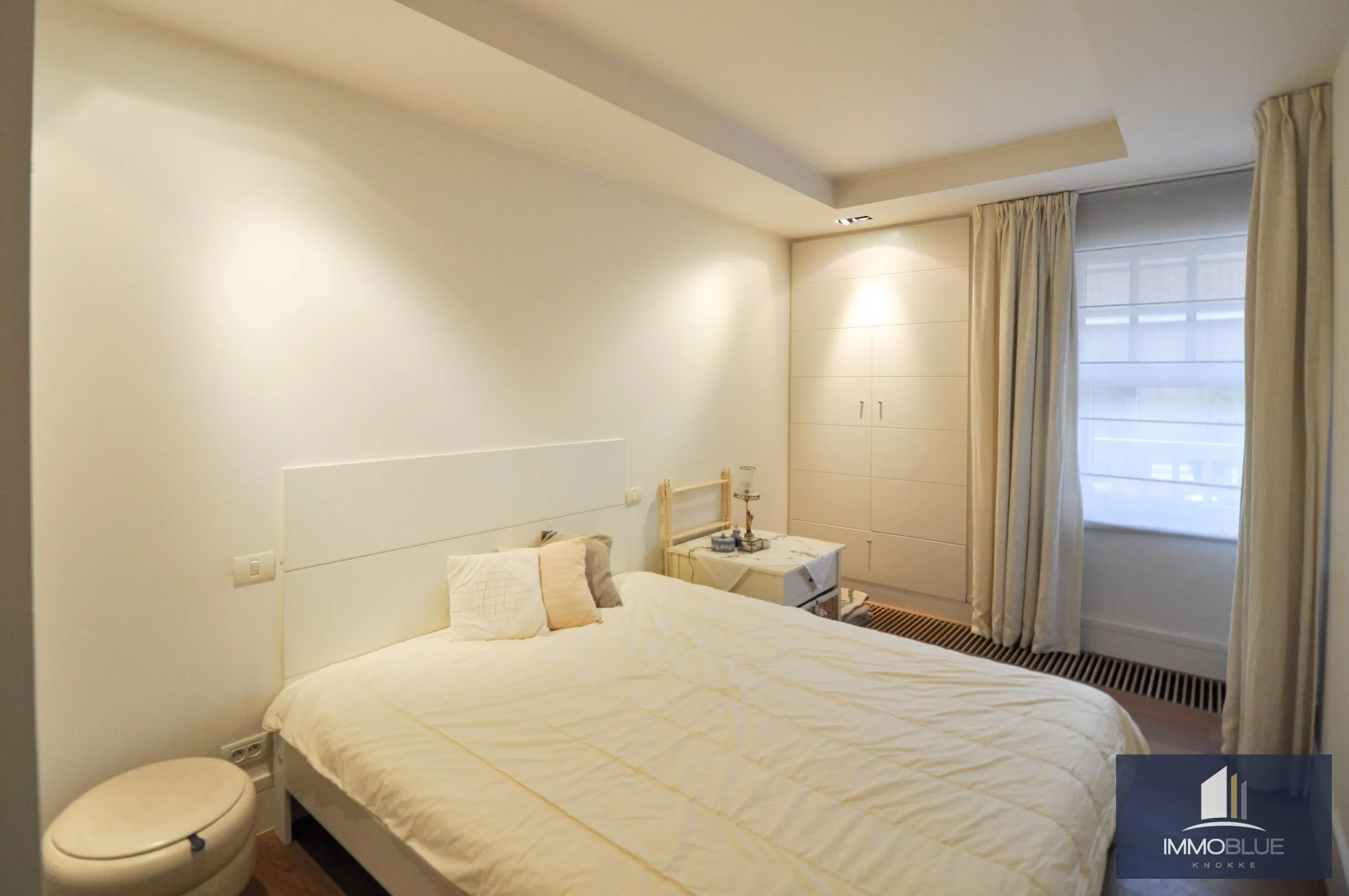 Perfect onderhouden appartement met een zonnig terras en een inpandige garages gelegen nabij het commercieel centrum en op enkele stappen van de zee. Indeling: inkom met gastentoilet en vestiaire. Ruime leefruimte met een open volledig geïnstalleerde keuken, eetkamer en salon uitgevend op het zonnig terras. Twee volwaardige slaapkamers met ingemaakte kasten. Badkamer en douchekamer. Aparte kast voorzien van een wasmachine. Inclusief één garage in de residentie.