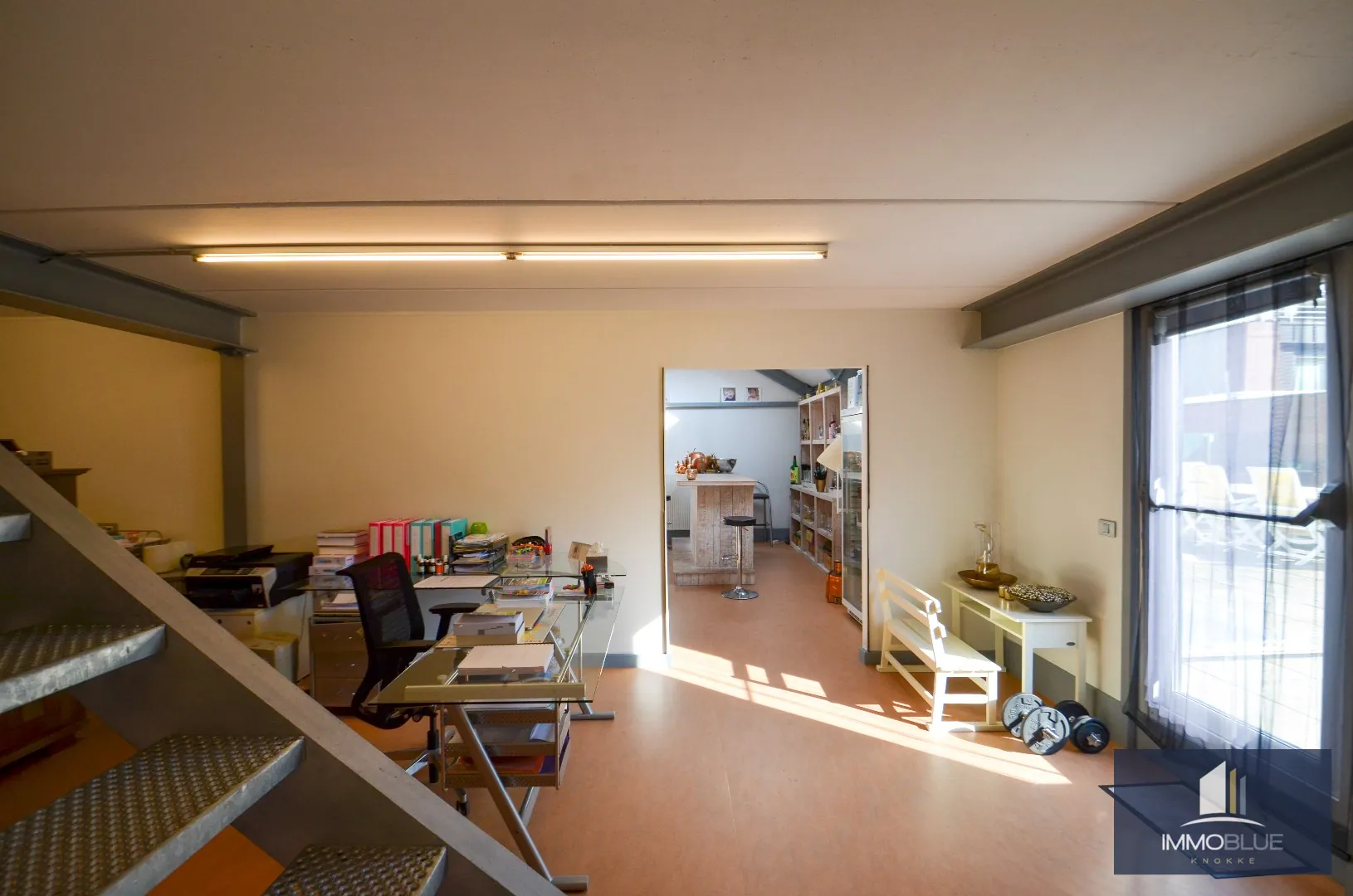 Prachtige polyvalente ruimte/kantoor met een ruim terras gelegen in een kleine residentie nabij het winkelcentrum. Deze polyvalente ruimte biedt veel mogelijkheden, ideaal voor een vrij beroep of atelier. Indeling: Ruime open ruimte voorzien van een open haard. Aparte kantoorruimte, beiden uitgevend op het terras. Keuken. Aparte opbergplaatsen. Toilet .Badkamer. Op de verdieping zijn er nog twee aparte ruimtes aanwezig.