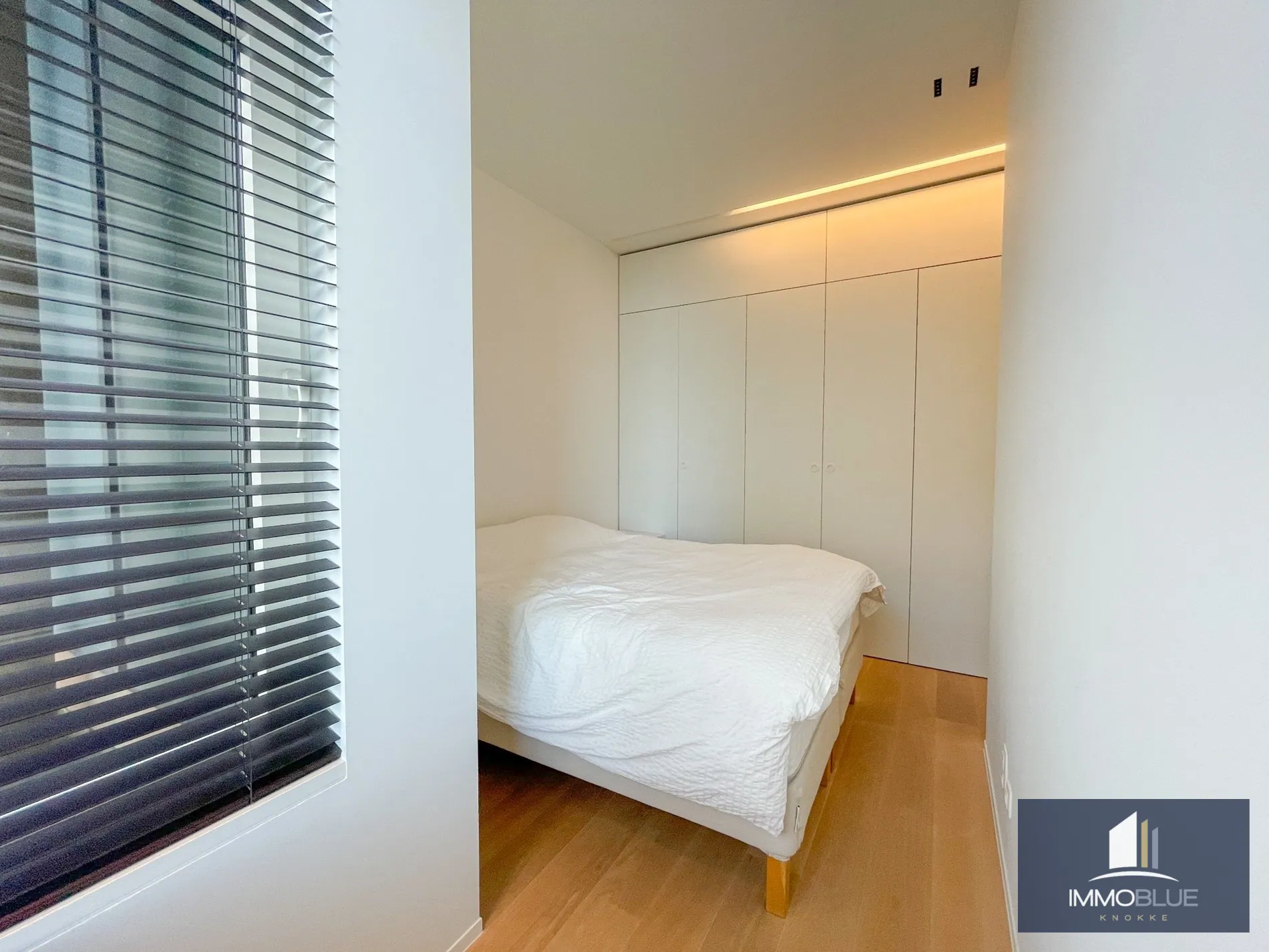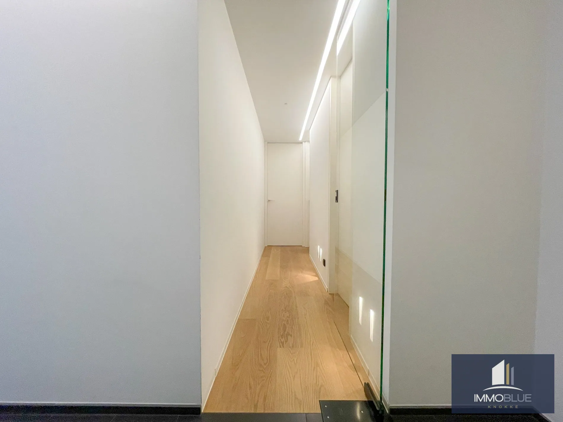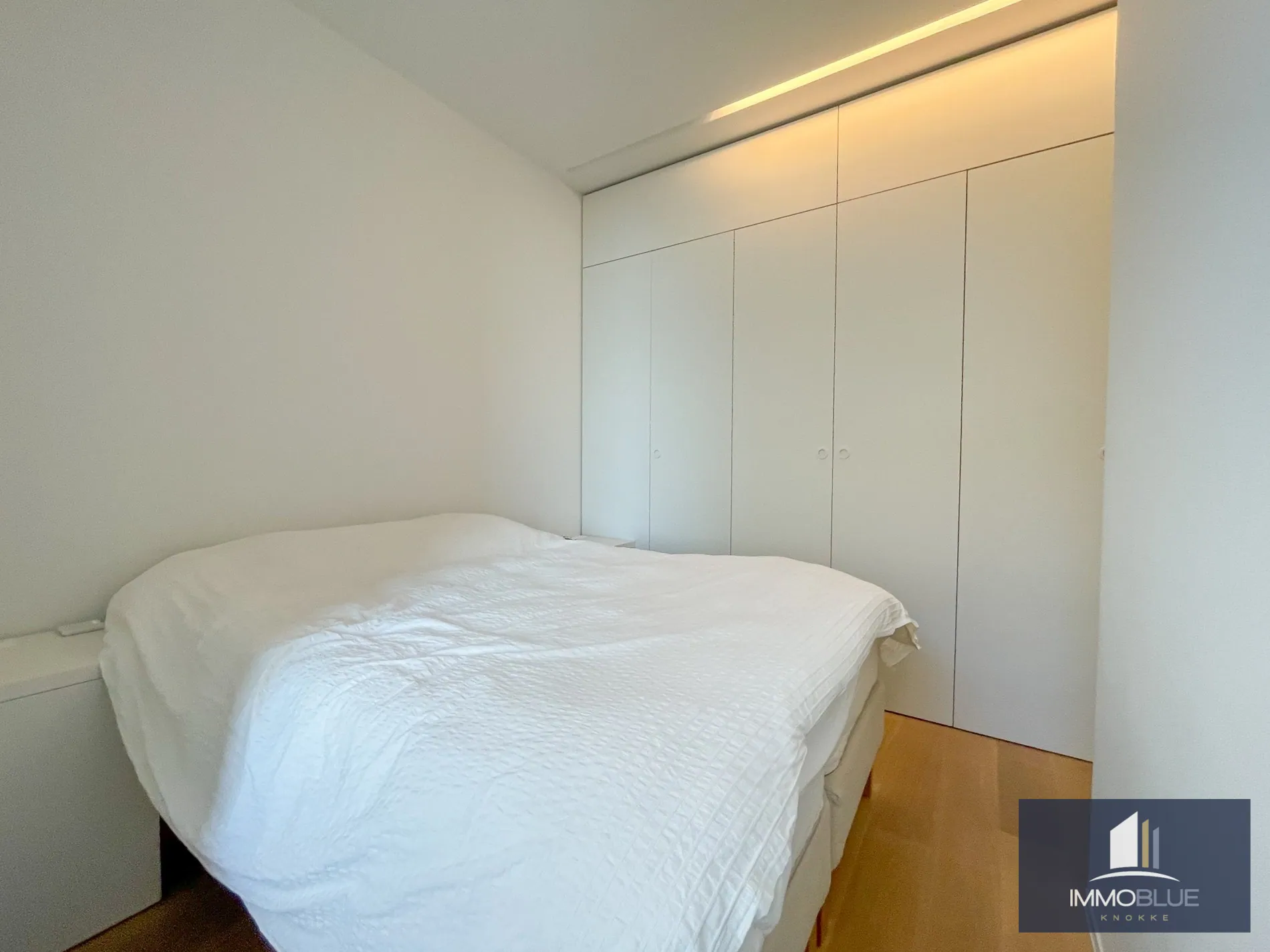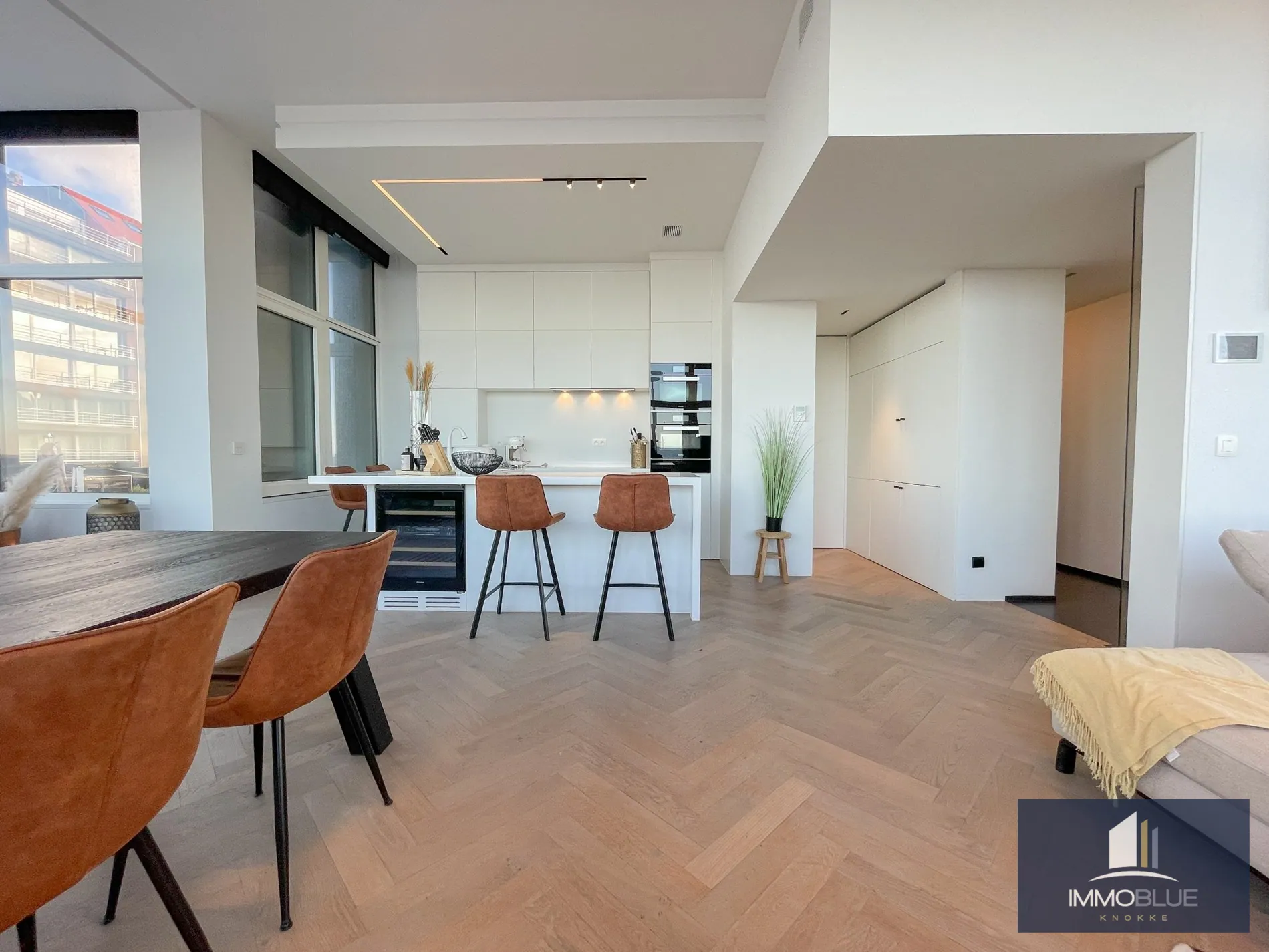 Uitzonderlijk, luxueus afgewerkt hoekappartement met frontaal zeezicht. Het appartement beschikt over de meest actuele, innoverende, akoestische en hoogtechnologische snufjes. zeer . Het appartement beschikt over een privatieve inkom en lift. Indeling: Inkomhal met vestiaire en gastentoilet. Lichtrijke en ruime leefruimte met een prachtig zicht over de zee en met een buitenterras gevoel dankzij de panoramisch open schuivende ramen bestaande uit een gezellige zithoek en eetkamer. Volledig geïnstalleerde open keuken voorzien van alle comfort met aanpalend een ruime berging met ingemaakte kasten en voorzien van een aansluiting voor het plaatsen van een wasmachine en droogkast. De nachthal geeft toegang tot twee volwaardige slaapkamers met ingemaakte kasten, TV aansluiting en internet Ruime badkamer. Op de verdieping : ruime master bedroom met badkamer.Het appartement beschikt eveneens over een volledige domotica besturing, alarm. Alle ramen zijn voorzien van screens. Privatieve kelder en fietsenberging. Mogelijkheid tot aankoop van een garage in de residentie.