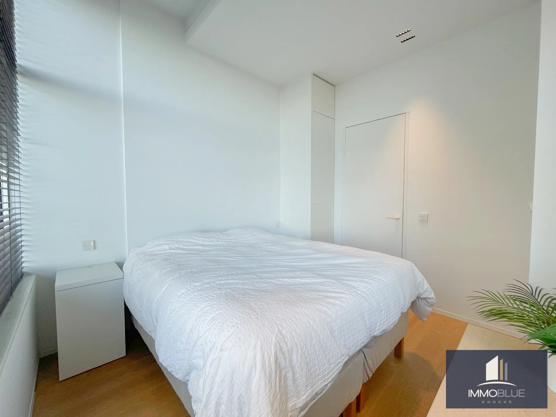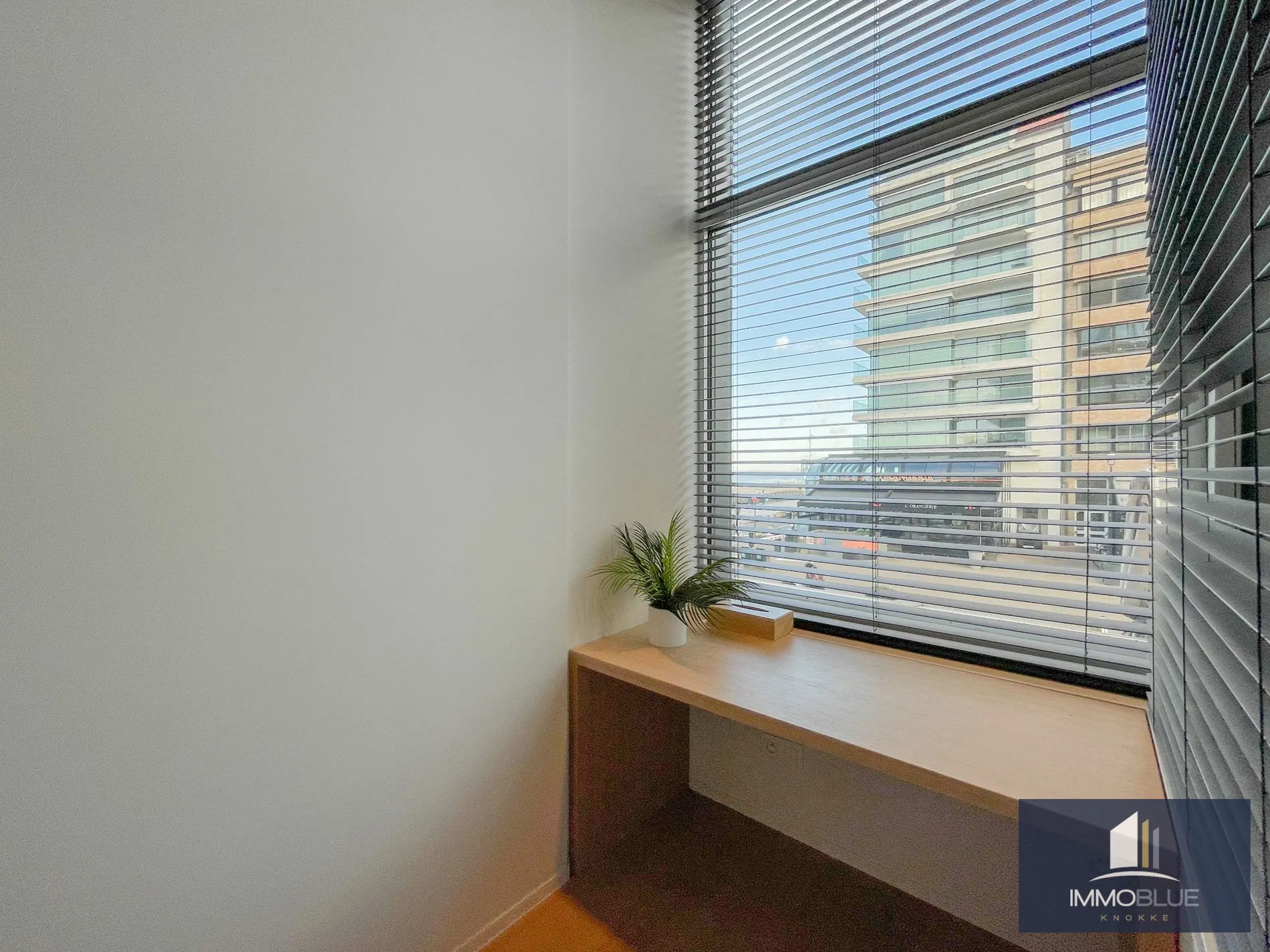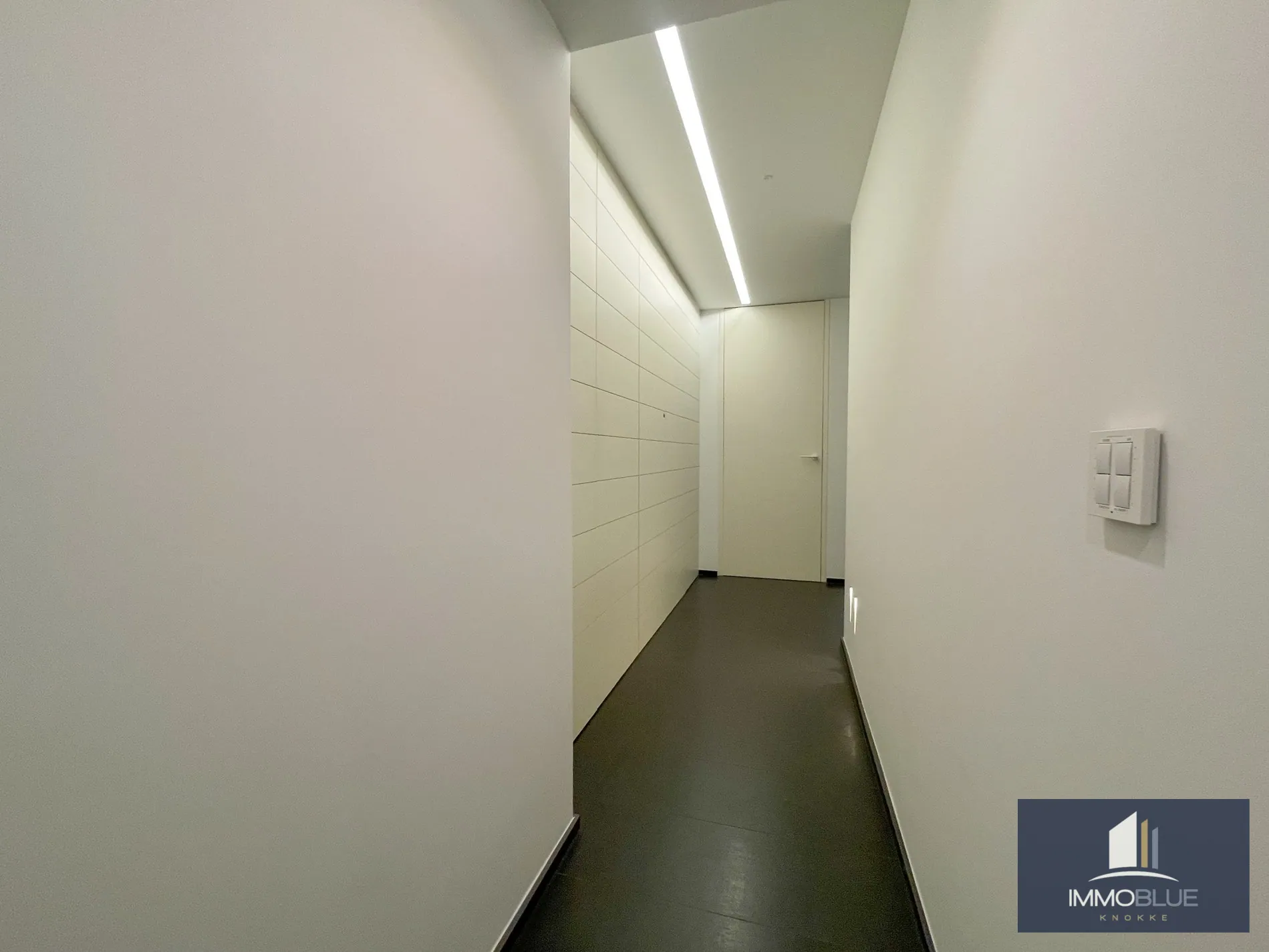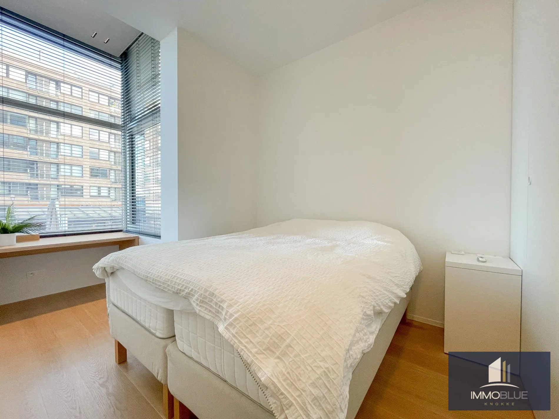 Uitzonderlijk, luxueus afgewerkt hoekappartement met frontaal zeezicht. Het appartement beschikt over de meest actuele, innoverende, akoestische en hoogtechnologische snufjes. zeer . Het appartement beschikt over een privatieve inkom en lift. Indeling: Inkomhal met vestiaire en gastentoilet. Lichtrijke en ruime leefruimte met een prachtig zicht over de zee en met een buitenterras gevoel dankzij de panoramisch open schuivende ramen bestaande uit een gezellige zithoek en eetkamer. Volledig geïnstalleerde open keuken voorzien van alle comfort met aanpalend een ruime berging met ingemaakte kasten en voorzien van een aansluiting voor het plaatsen van een wasmachine en droogkast. De nachthal geeft toegang tot twee volwaardige slaapkamers met ingemaakte kasten, TV aansluiting en internet Ruime badkamer. Op de verdieping : ruime master bedroom met badkamer.Het appartement beschikt eveneens over een volledige domotica besturing, alarm. Alle ramen zijn voorzien van screens. Privatieve kelder en fietsenberging. Mogelijkheid tot aankoop van een garage in de residentie.