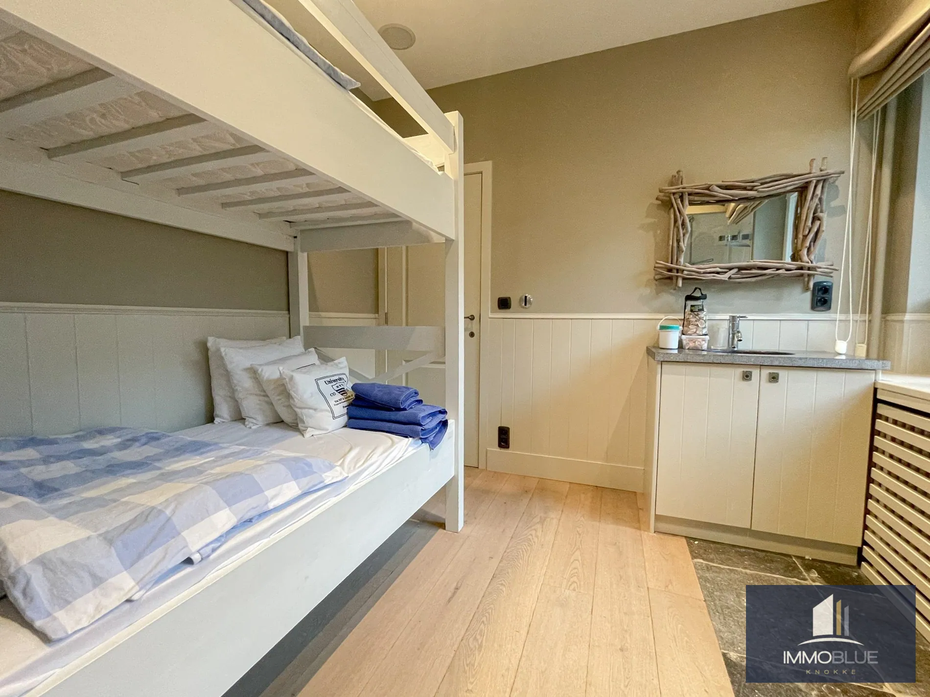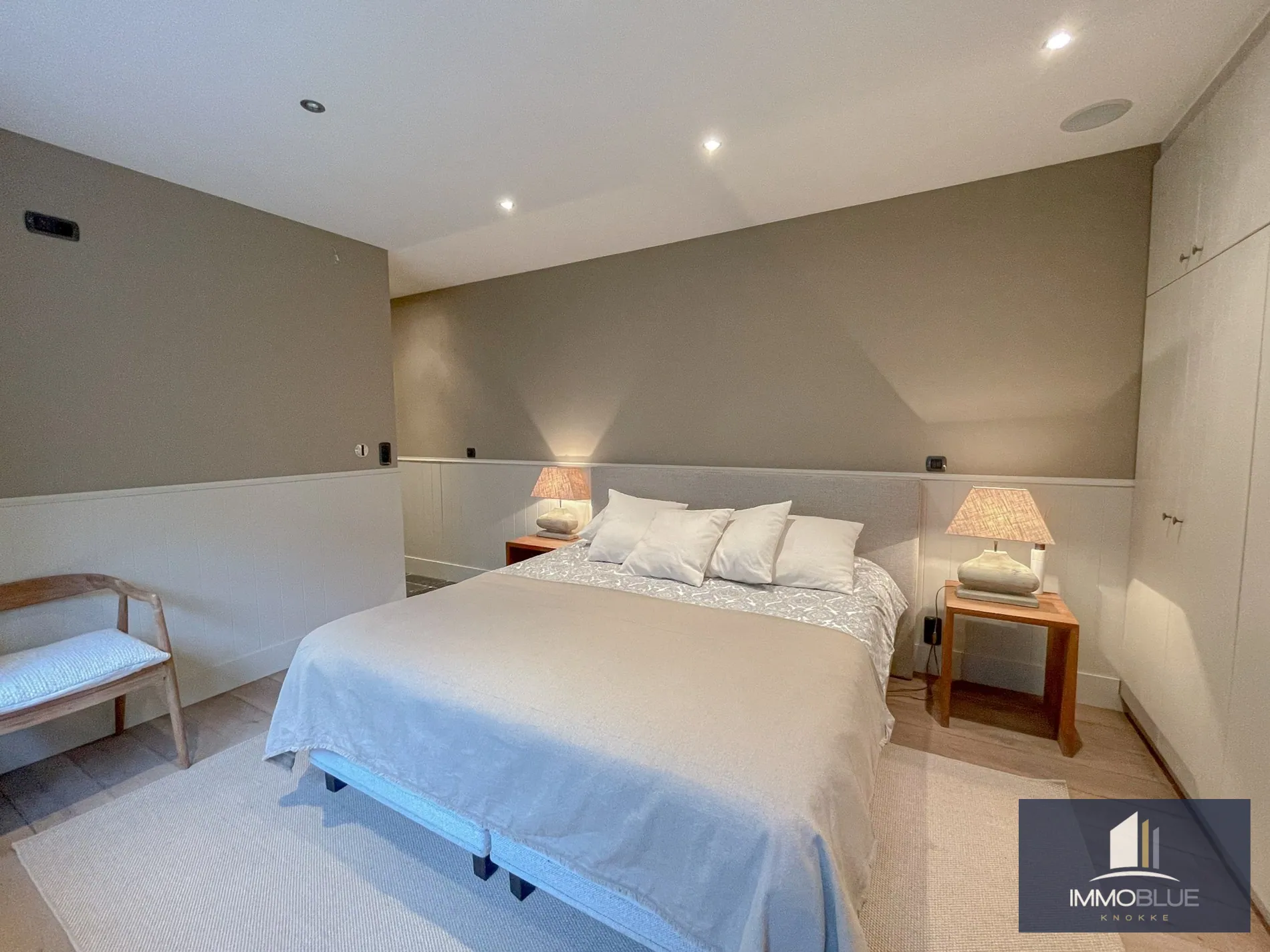 Indeling: Inkom met gastentoilet en vestiaire. Ruime leefruimte bestaande uit een volledig geïnstalleerde open keuken voorzien van een Lacanche vuur en Miele toestellen met aanpalend een wasplaats/berging, eetplaats en een ruim salon. Masterbedroom met ingemaakte kasten en een badkamer voorzien van een ligbad, toilet en wastafel. Tweede volwaardige slaapkamer met ingemaakte kasten en douche. Derde slaapkamer met douche. Privatieve kelder en gemeenschappelijke fietsenberging in de residentie. Mogelijkheid tot het huren van een garage.