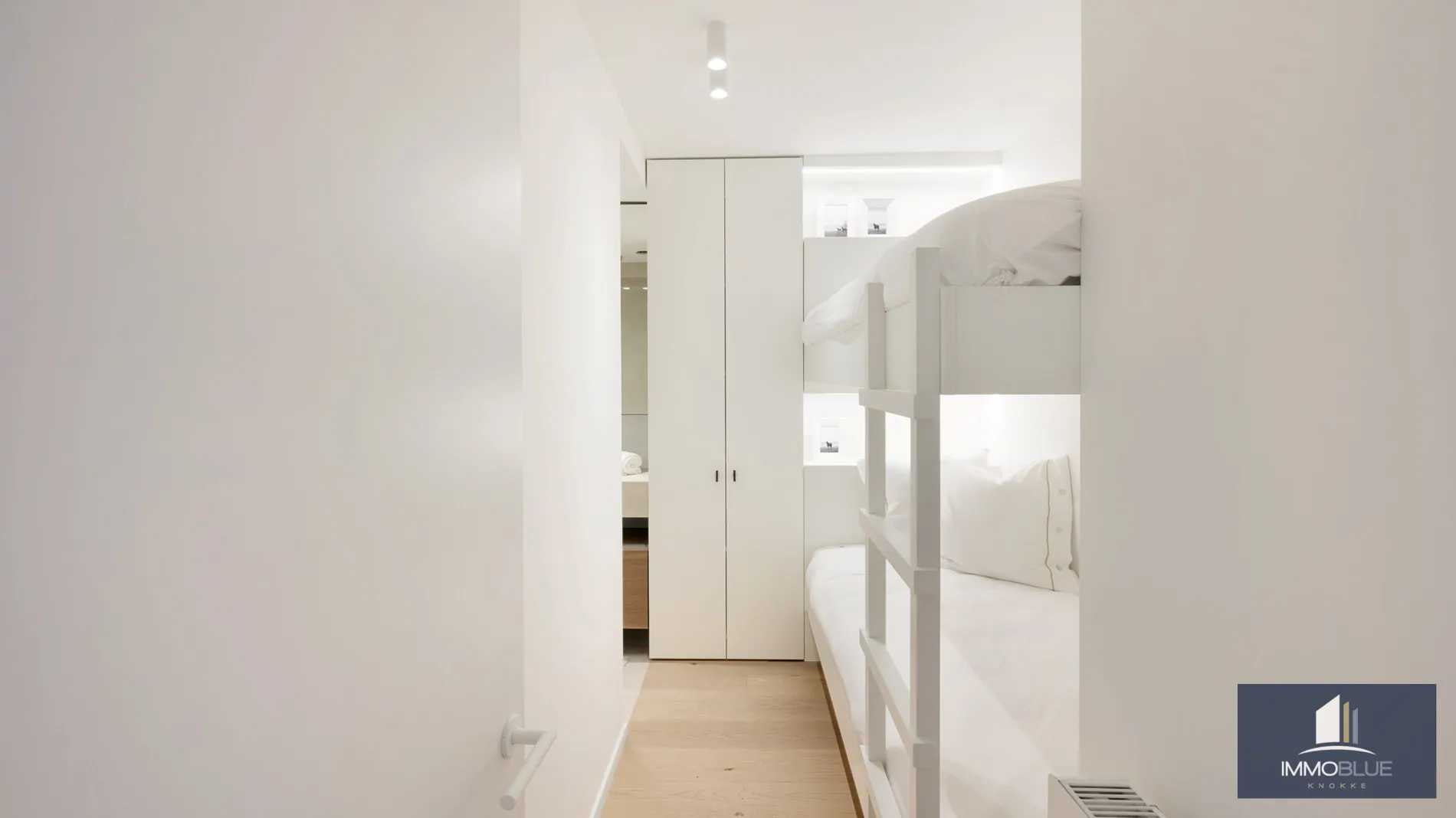 De derde slaapkamer is uitgerust met een stapelbed, ingemaakte kasten en een eigen douchekamer.