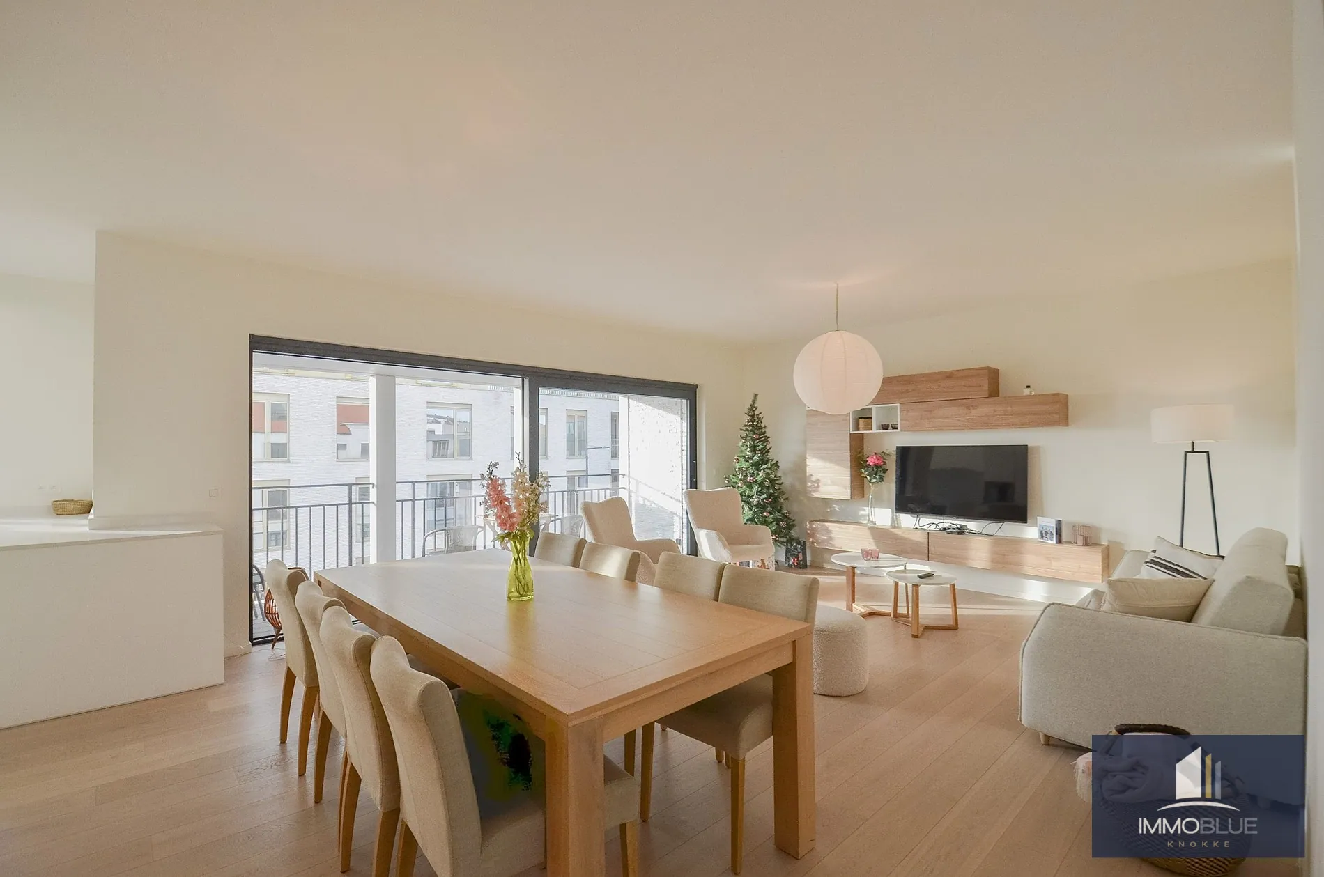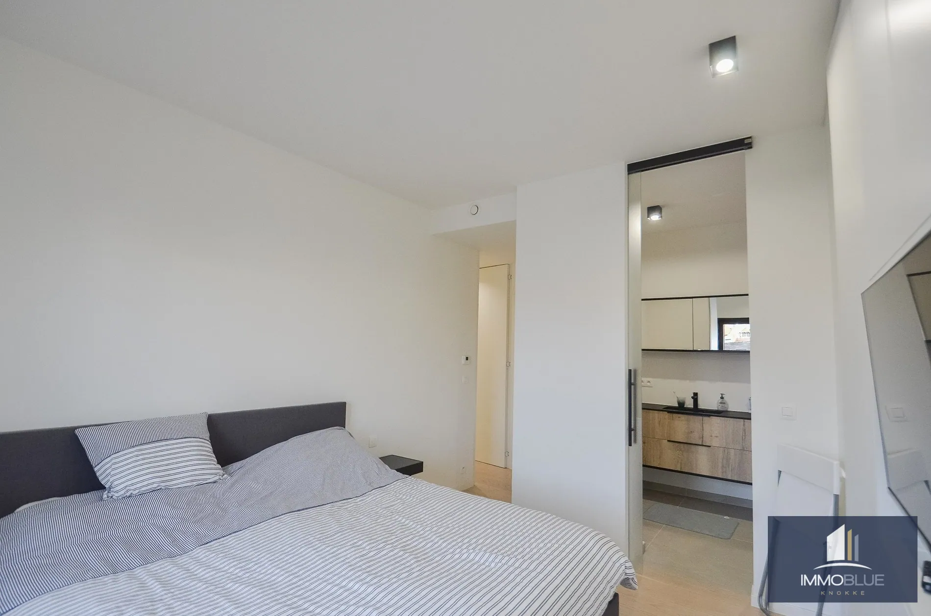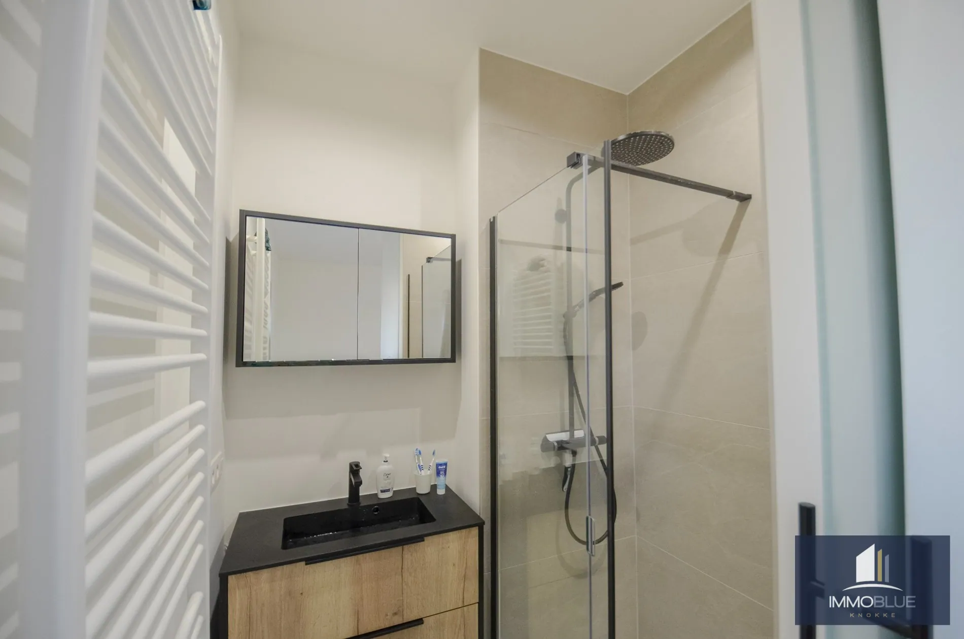 Indeling: Ruime inkom met vestiaire en gastentoilet. Lichtrijke leefruimte met een gevelbreedte van ongeveer 5,2 meter uitgevend op het zonnig terras. Volledig geïnstalleerde open keuken voorzien van alle comfort met aanpalend een ruime berging voorzien voor het plaatsen van een wasmachine en droogkast. Vanuit de leefruimte en keuken kan men genieten van een open zicht. Twee volwaardige slaapkamers met ingemaakte kasten met elk een eigen badkamer/douchekamer. Privatieve kleder en gemeenschappelijke fietsenberging in de residentie. Mogelijkheid tot aankoop van een staanplaats in de residentie.