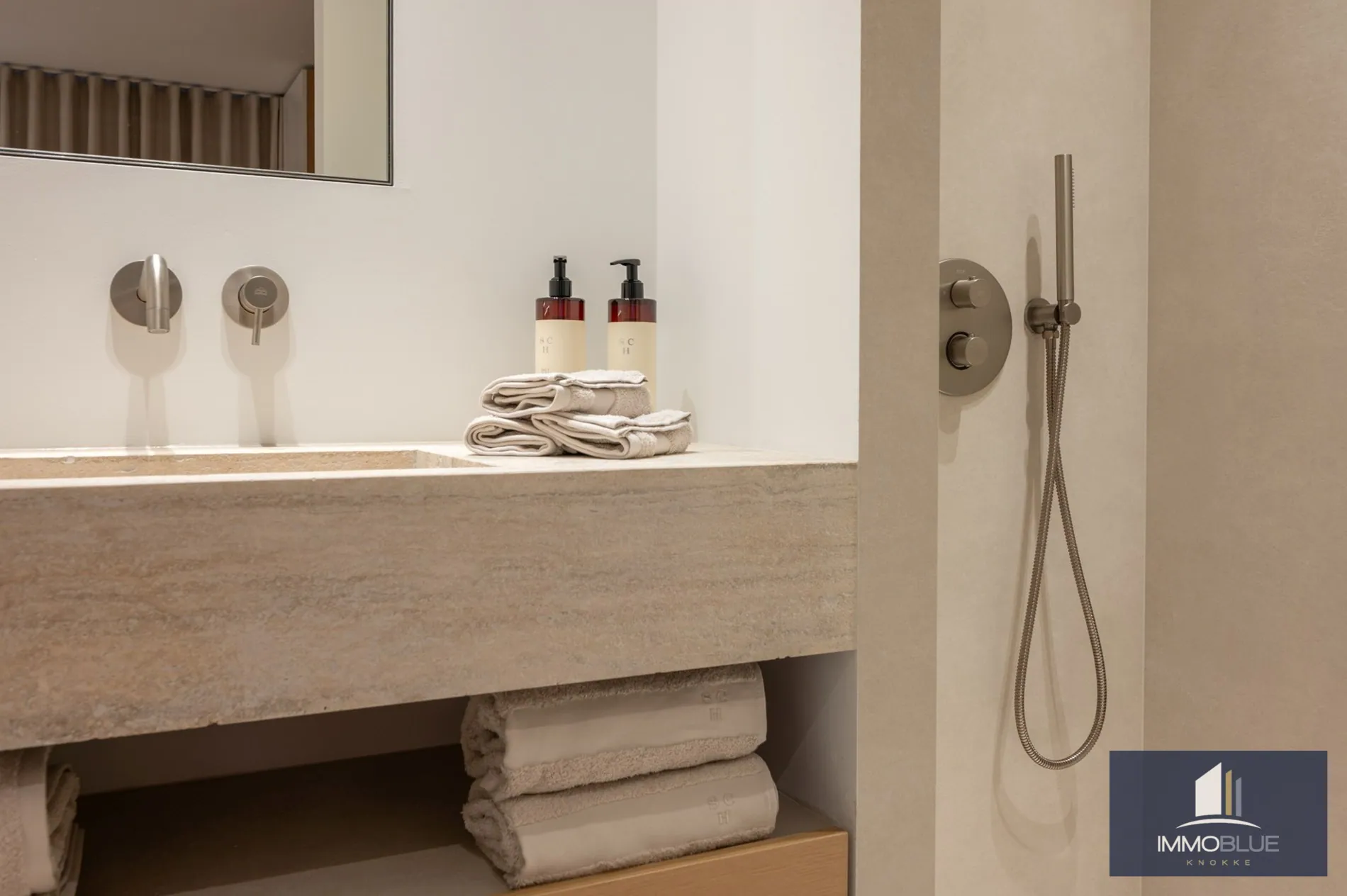 Volledig stijlvol gerenoveerd appartement, gelegen in een residentie waar de gevels, terrassen en balustrades momenteel volledig worden vernieuwd.