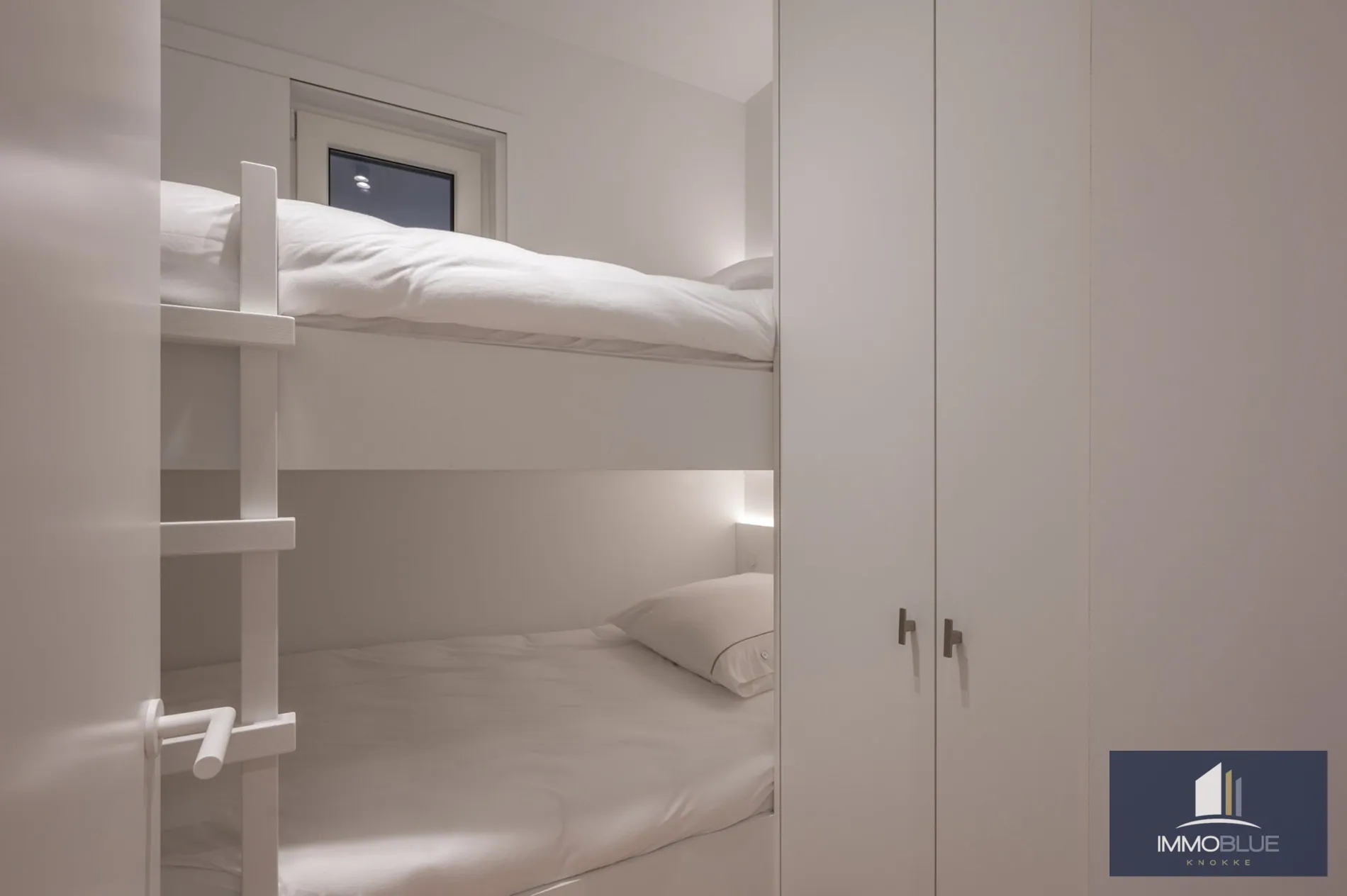 De masterbedroom is uitgerust met ingemaakte kasten en een aansluitende douchekamer. Daarnaast is er een tweede volwaardige slaapkamer met ingemaakte kasten en een derde slaapkamer met ingemaakte kast en een op maat gemaakt stapelbed. Een tweede douchekamer met extra toilet vervolledigt dit aangename geheel.