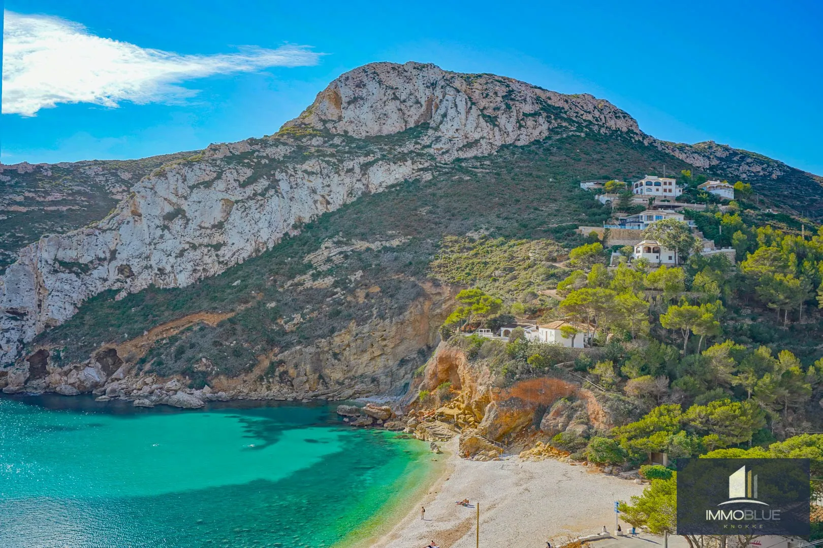 Begane grond: een ruime, lichte woonkamer met volledig uitgeruste keuken en directe toegang tot het royale terras van 140 m² met overloopzwembad en spectaculair uitzicht op de baai van Granadella. Op dit niveau bevinden zich ook de hoofdslaapkamer met en-suite badkamer en een gastentoilet.