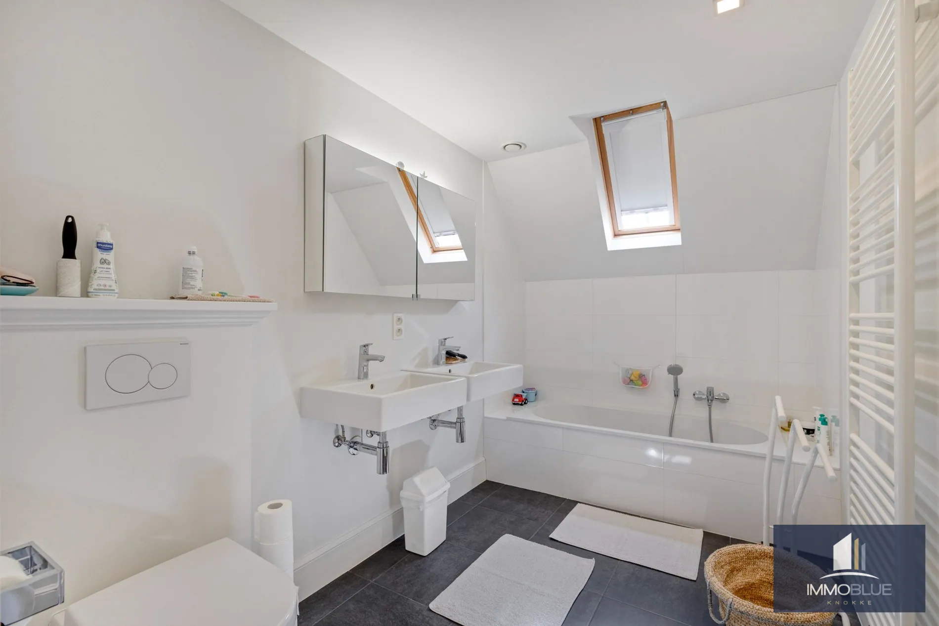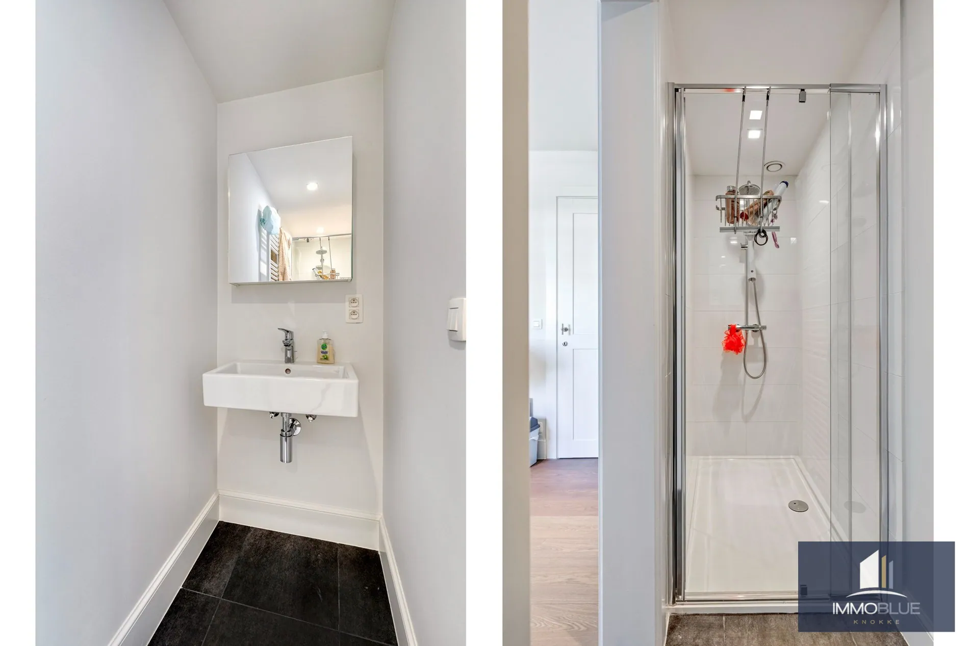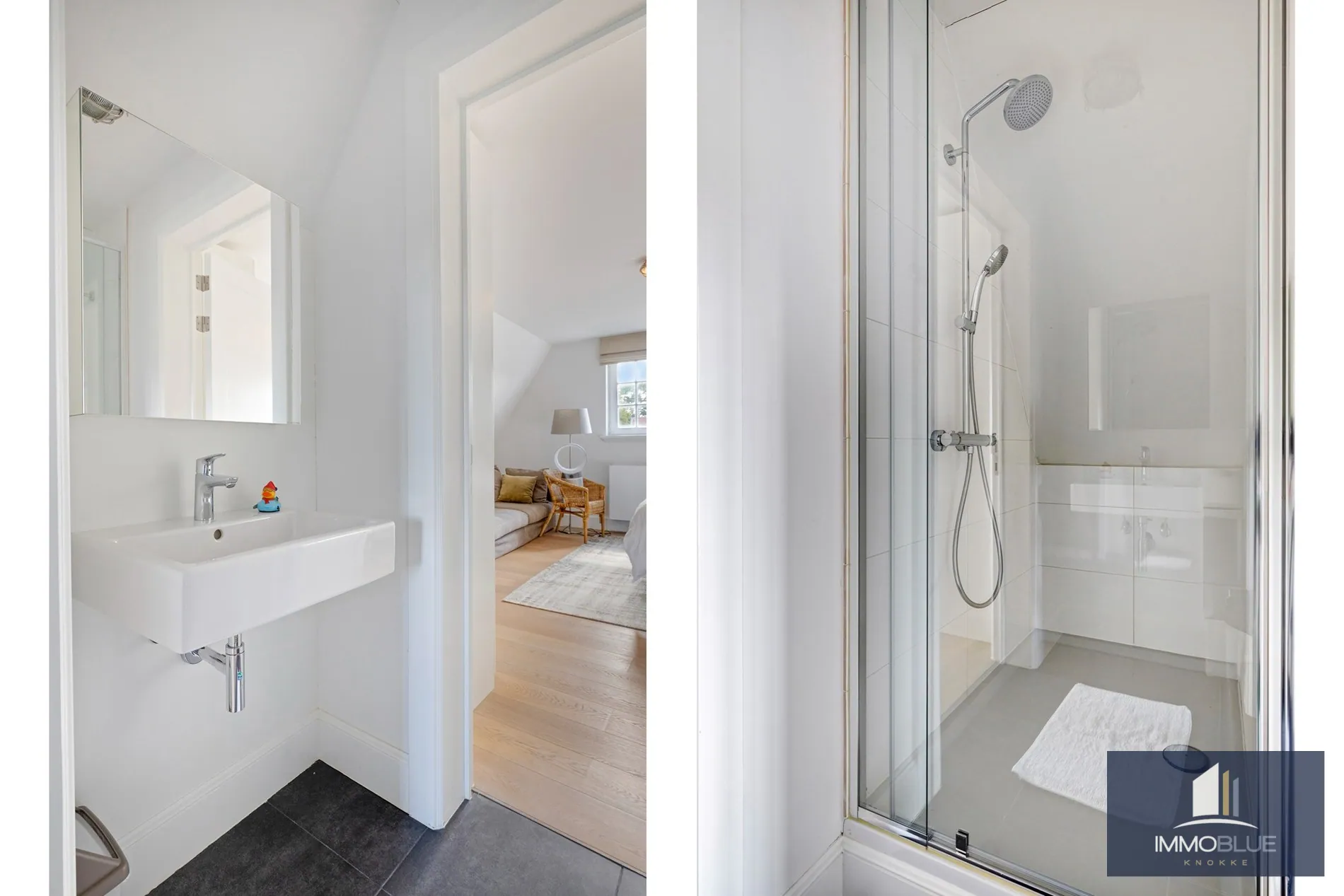 Tweede verdieping: Drie volwaardige slaapkamers, twee douchekamers. Apart toilet. Zolder. Dubbele garage en meerdere staanplaatsen aanwezig voor de villa. Deze smaakvolle villa is voorzien van een domotica-systeem, vloerverwarming en alarm. Voorzieningen om het plaatsen van een lift aanwezig.