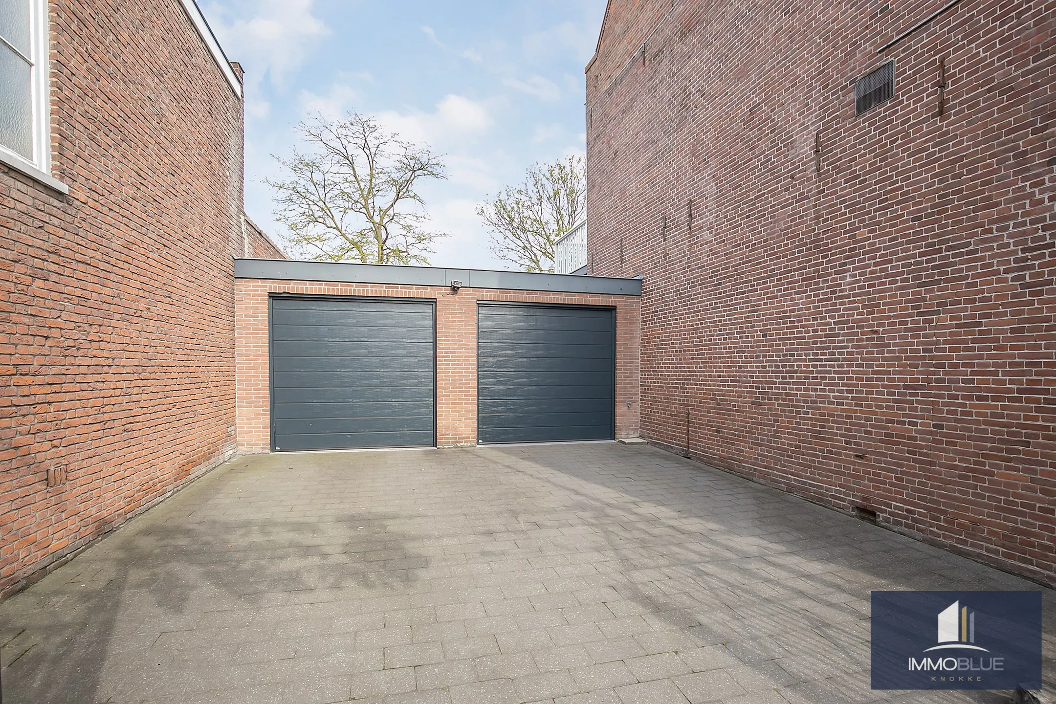 Er is ruimte voor het plaatsen van 4 auto's, twee in de dubbele garage is die voorzien is van elektrische poorten .Via de garage kan men eveneens de tuin bereiken.