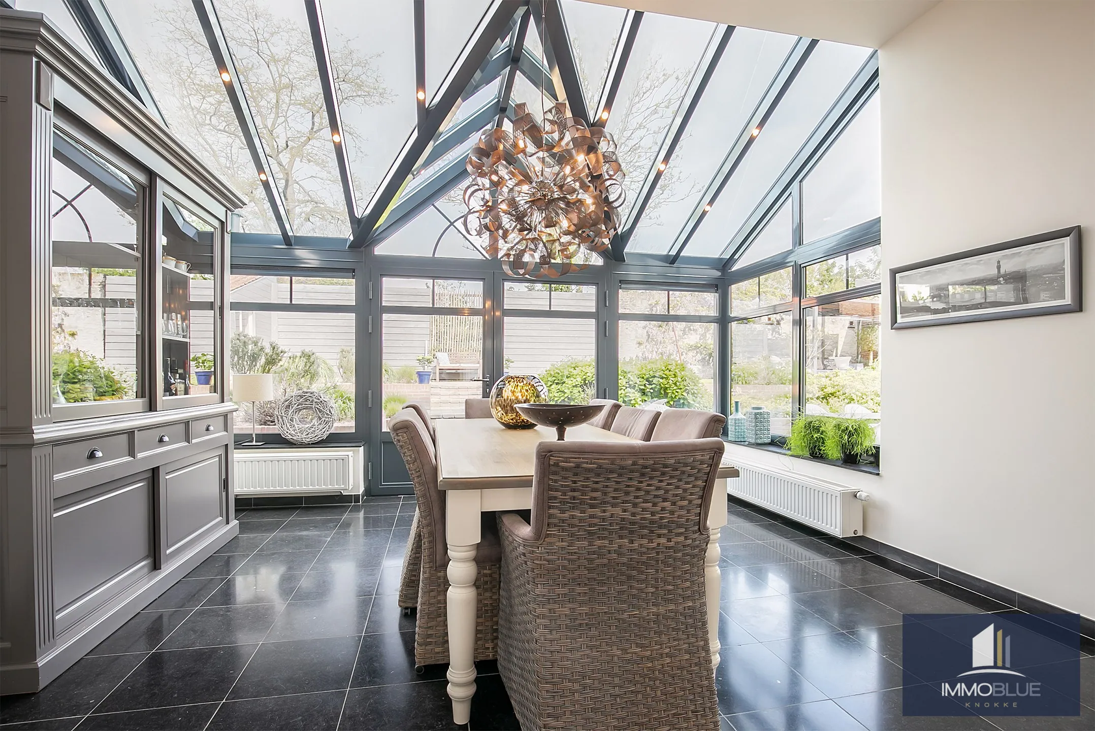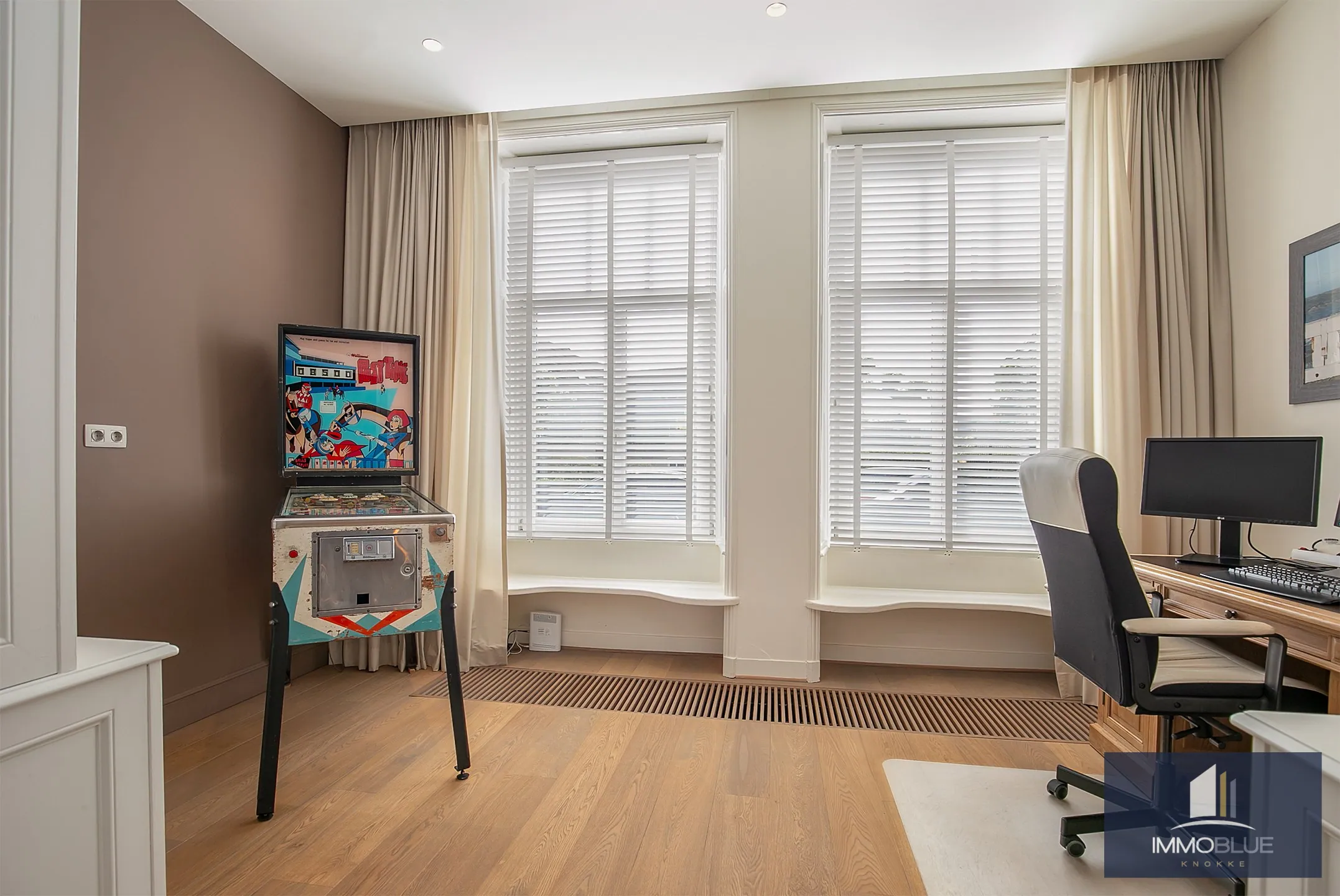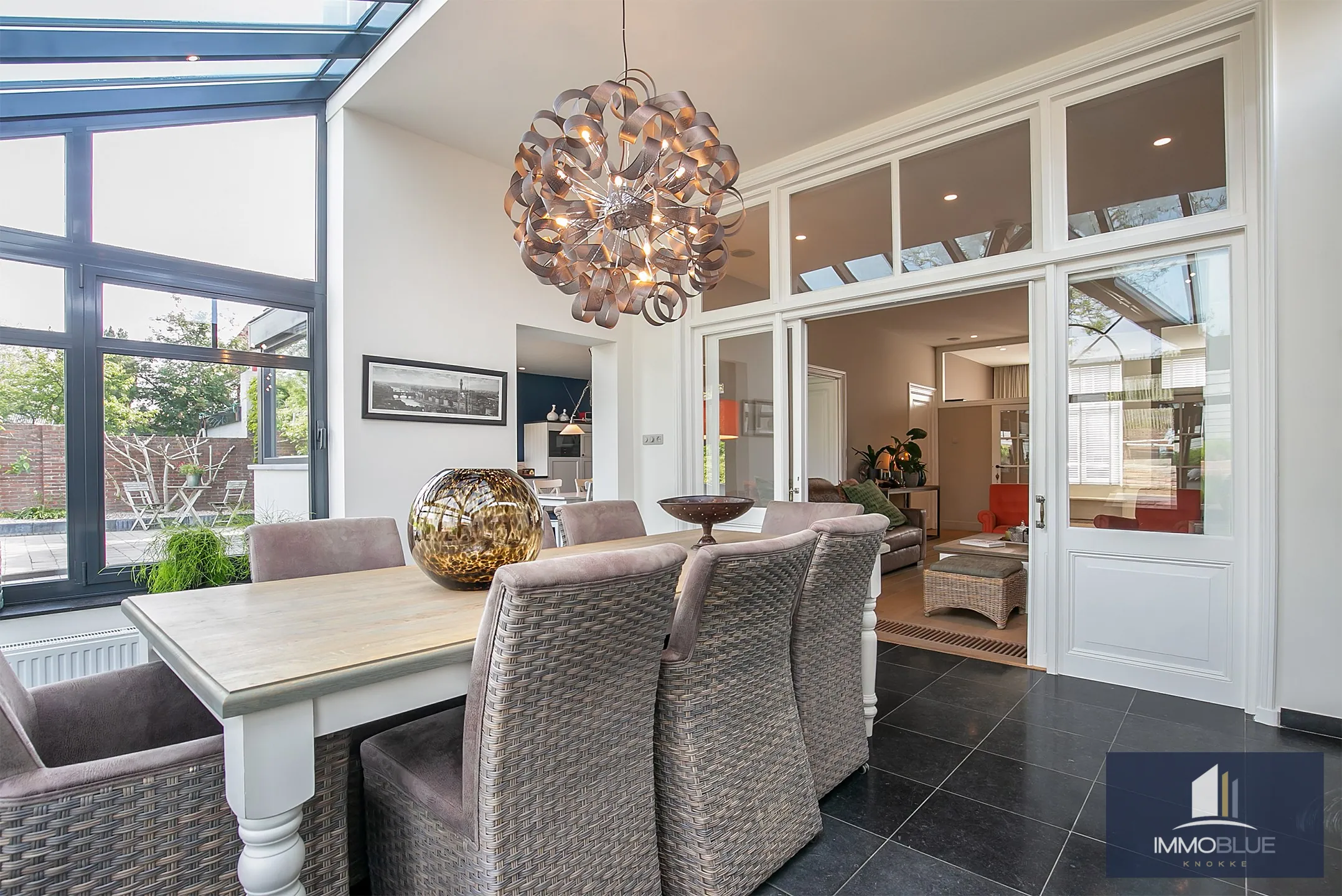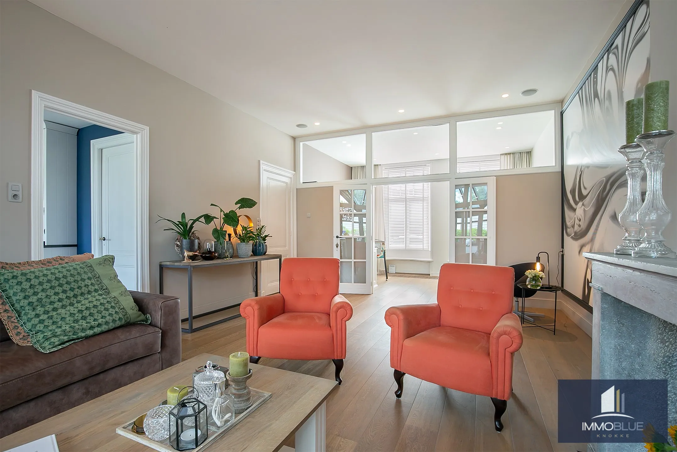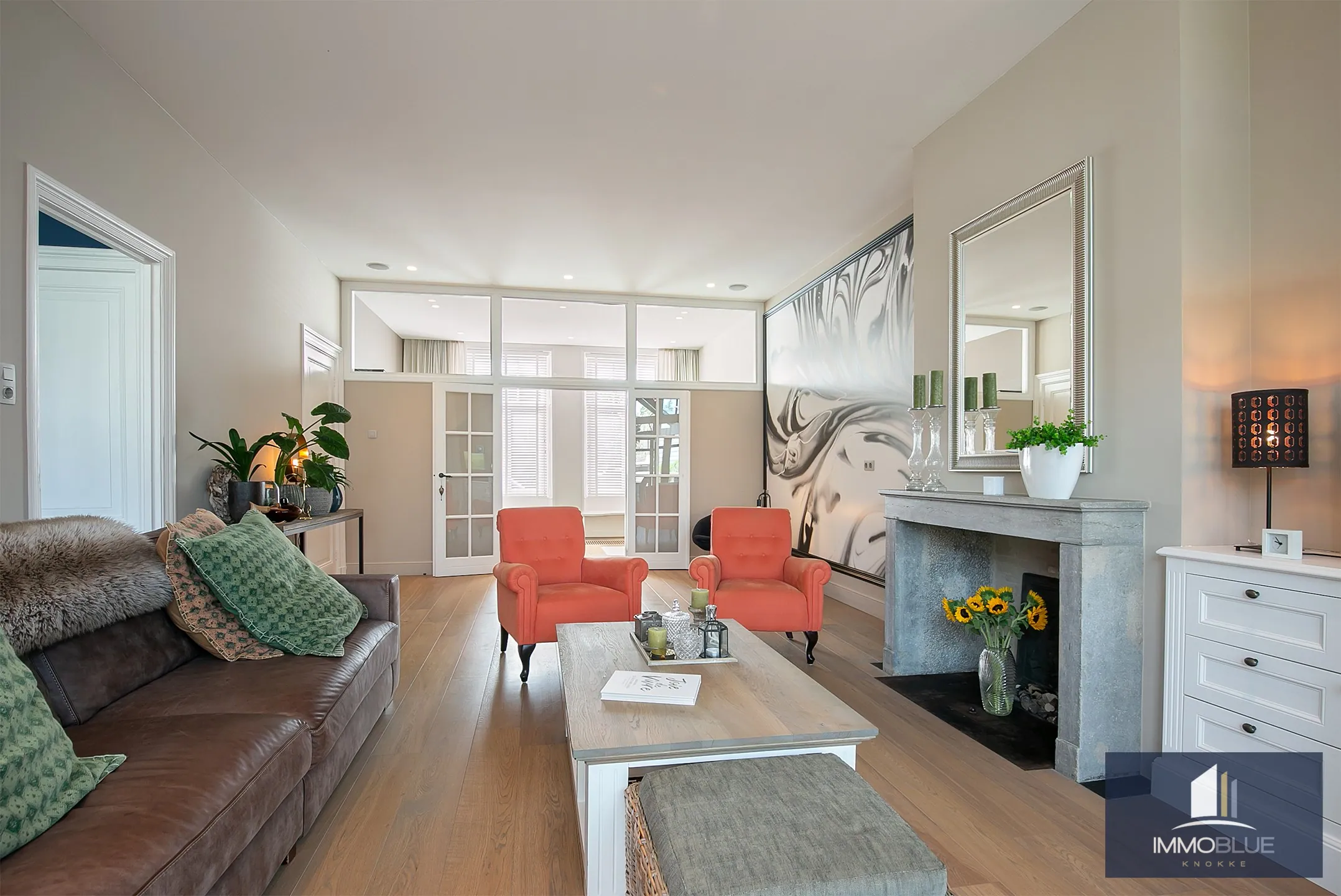 Exclusief herenhuis met ruime leefruimtes, afgewerkt met mooie materialen rekening houdend met het karakter en authenticiteit van de woning . Deze stijlvolle woning met een zonnige tuin ,terrassen en dubbele garage beschikt over alle comfort en privacy en is gelegen in Sluis. Indeling: Inkomhal met gastentoilet en ruime vestiaire. Lichtrijke leefruimte ingedeeld in salon met gashaard met aansluitend een bureau.