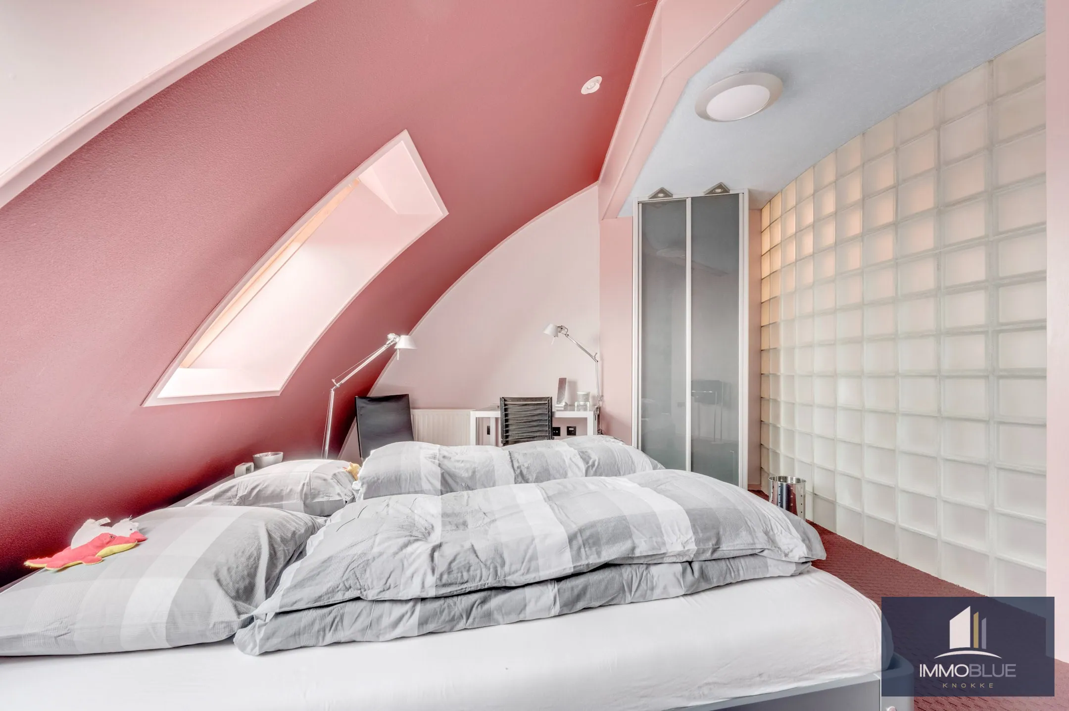 Bij binnenkomst treft u een ruime inkomhal met gastentoilet. De royale leefruimte is voorzien van op maat gemaakte inbouwkasten en biedt directe toegang tot het dakterras. De halfopen keuken is uitgerust met alle moderne gemakken.