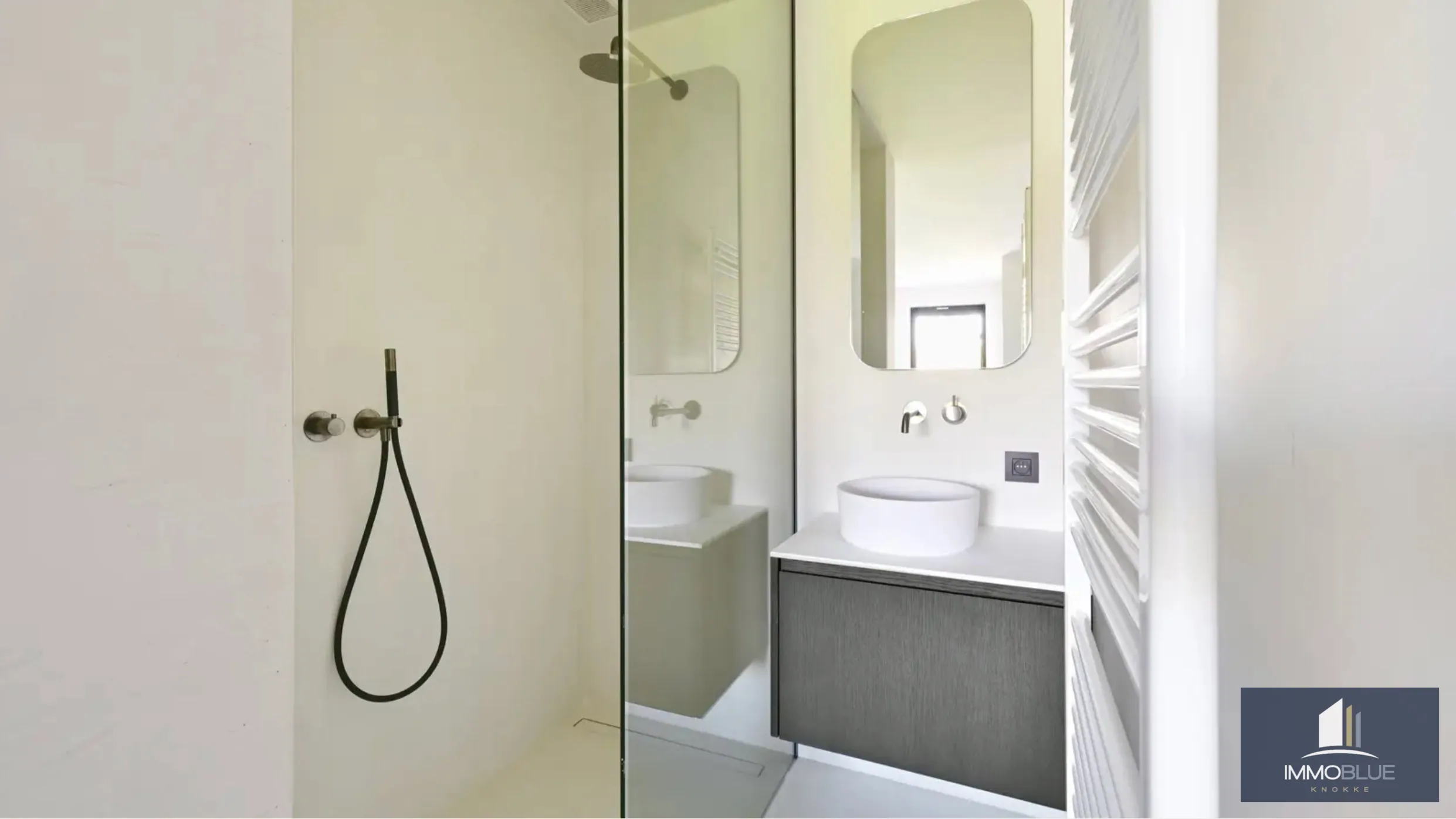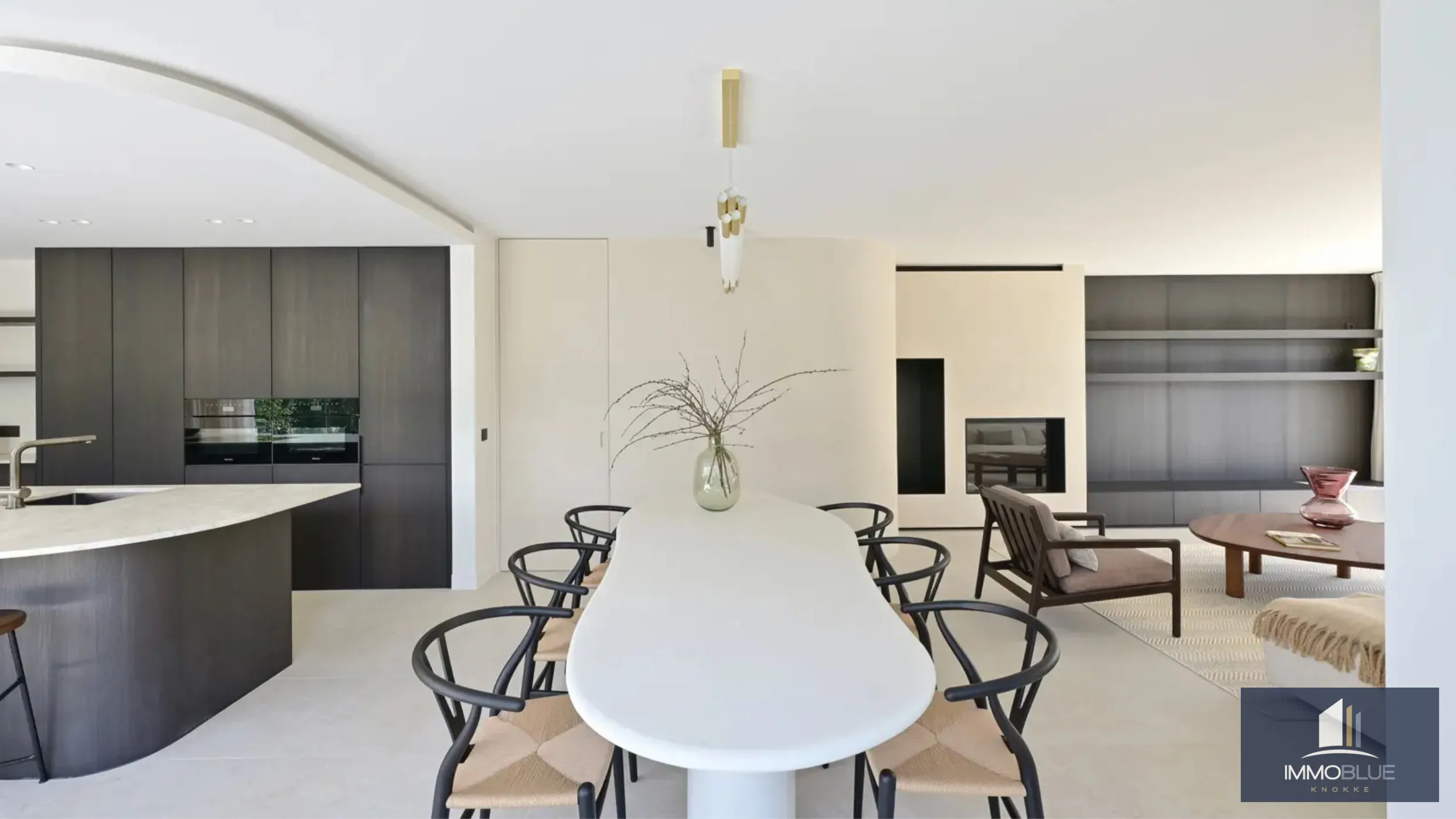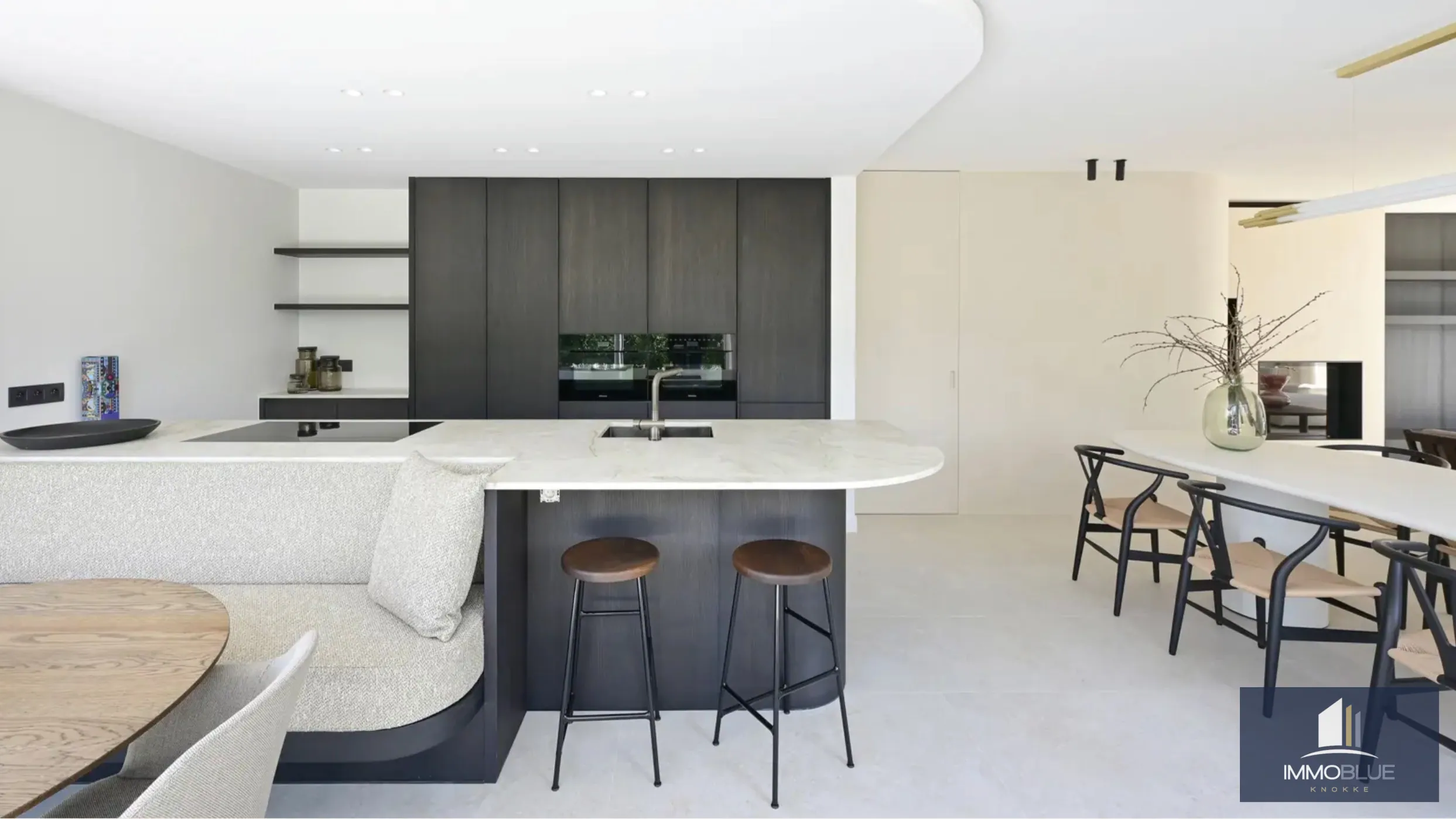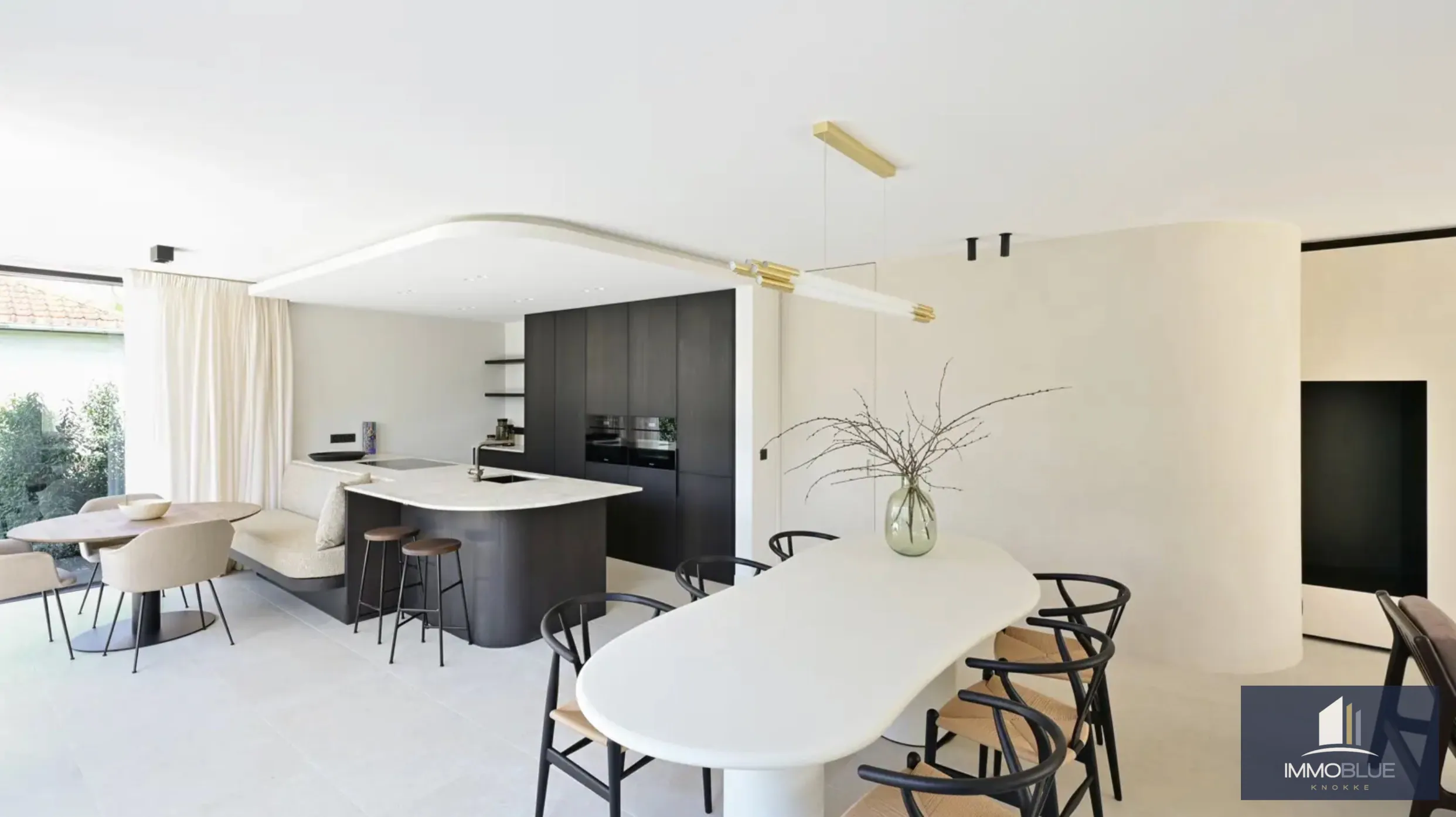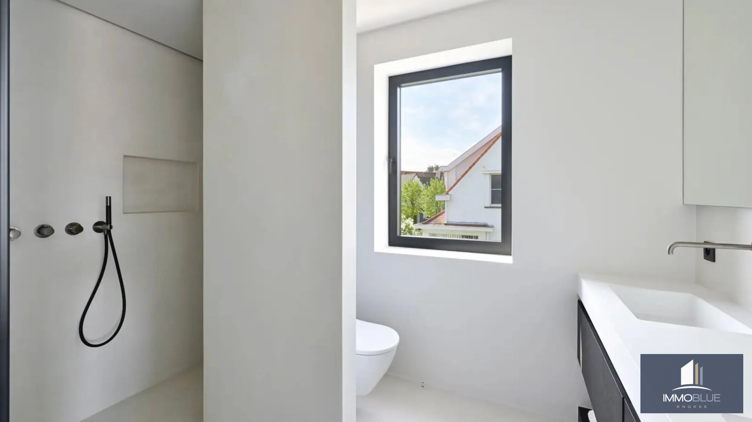Deze unieke en rustig gelegen nieuwbouw koppelvilla met 6 volwaardige slaapkamers bevindt zich nabij de Zeedijk en vlakbij het centrum van Knokke. Duurzaamheid is een kernwaarde in deze woning, met een voortreffelijk E-peil (E19 – BEN woning) als bewijs. De woning is o.a. uitgerust met een warmtepomp (geothermie), meerdere zonnepanelen, ventilatiesysteem type C+, vloerverwarming met koelfunctie op 3 verdiepingen, laadpaal voor elektrische voertuigen, bewakingscamera, regenwaterput van 5000 liter, ... Het volledige interieur van de woning werd ontworpen door de interieurarchitect Bryan Chielens. Bovendien is er een mogelijkheid tot het aankopen van het meubilair, dat geleverd werd door RR interieur Knokke-Heist. Indeling van gelijkvloers: inkomhal met gastentoilet. Zeer lichtrijke leefruimte met grote raampartijen die toegang bieden tot de zonovergoten, en onderhoudsvriendelijke tuin met 2 terrassen en tuin/fietsenberging, aangelegd door ECO Tuinarchitectengroep. Luxueuze en volledig geïnstalleerde open keuken die voorzien is van Miele-toestellen. Aanpalende bergruimte met aansluitingen voor een wasmachine en droogkast. Indeling van 1e verdiep: nachthal met apart toilet. Op dit niveau bevindt zich de master bedroom, voorzien van verschillende ingemaakte kasten, en met een luxueuze douchekamer (voorzien van inloopdouche en dubbele lavabo). Daarnaast zijn er nog 2 volwaardige slaapkamers met verschillende ingemaakte kasten en bureau, met telkens een douchekamer en suite. Indeling van 2e verdiep: nachthal met apart toilet. Op dit niveau bevinden zich 3 volwaardige slaapkamers met ingemaakte kasten en bureau/berging. Daarnaast is er een aparte badkamer met een ligbad en wastafel. Grote zolderruimte. Gesplitste verkoop grond en constructie.