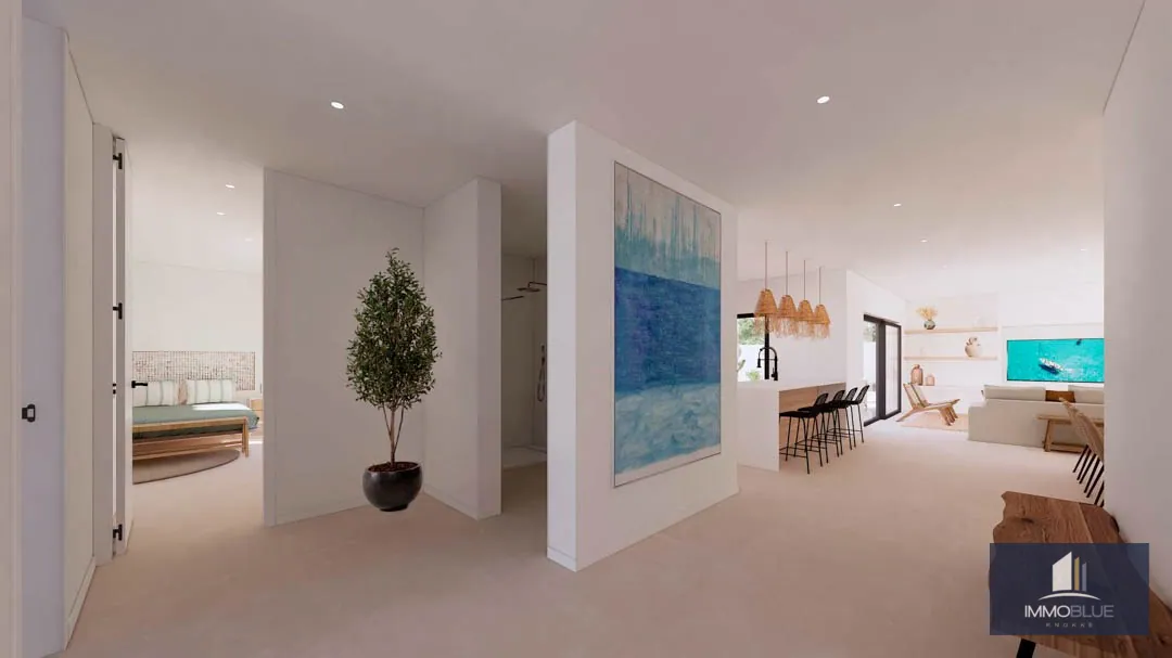 De villa is ontworpen met lichte en ruime vertrekken, en omvat vier slaapkamers en vier badkamers. De indeling van het interieur kan, binnen bepaalde grenzen, nog worden aangepast aan uw wensen.