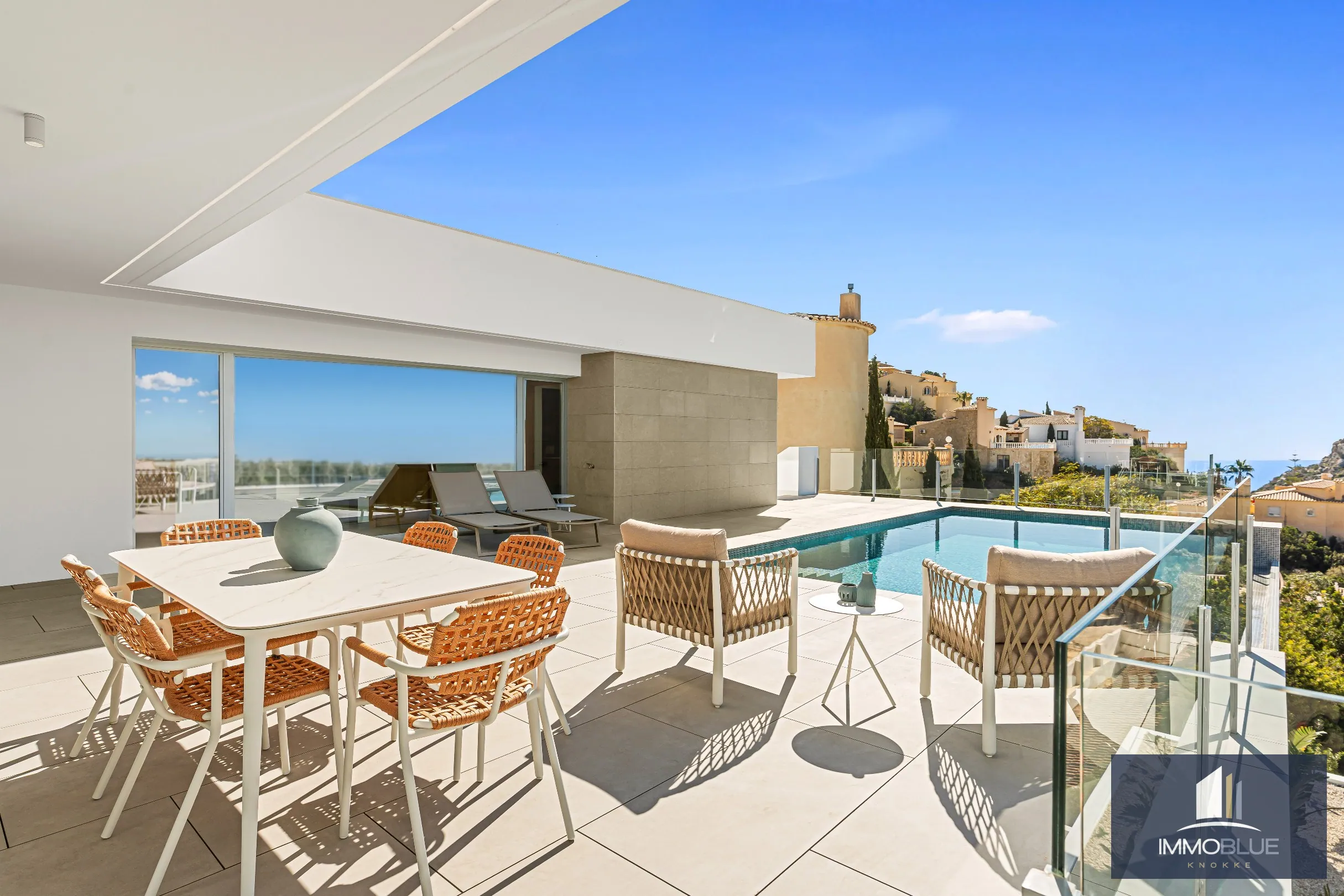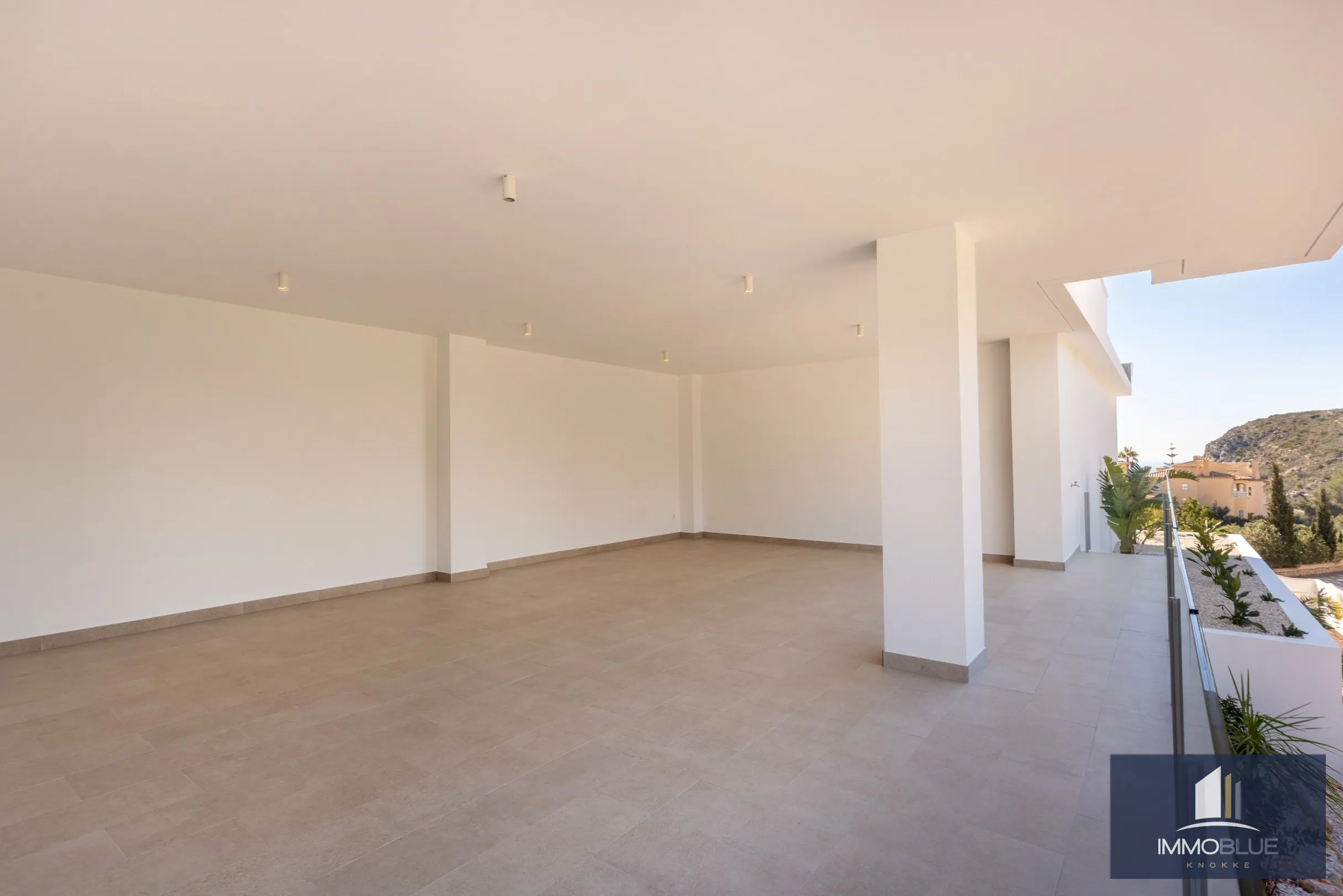 Villa Nara ligt aan de Costa Blanca en wordt omgeven door mediterrane beplanting. Deze nieuwbouwwoning, momenteel in opbouw, is ontworpen voor comfortabel wonen hoofdzakelijk op één niveau, met een sterke verbinding tussen binnen en buiten.