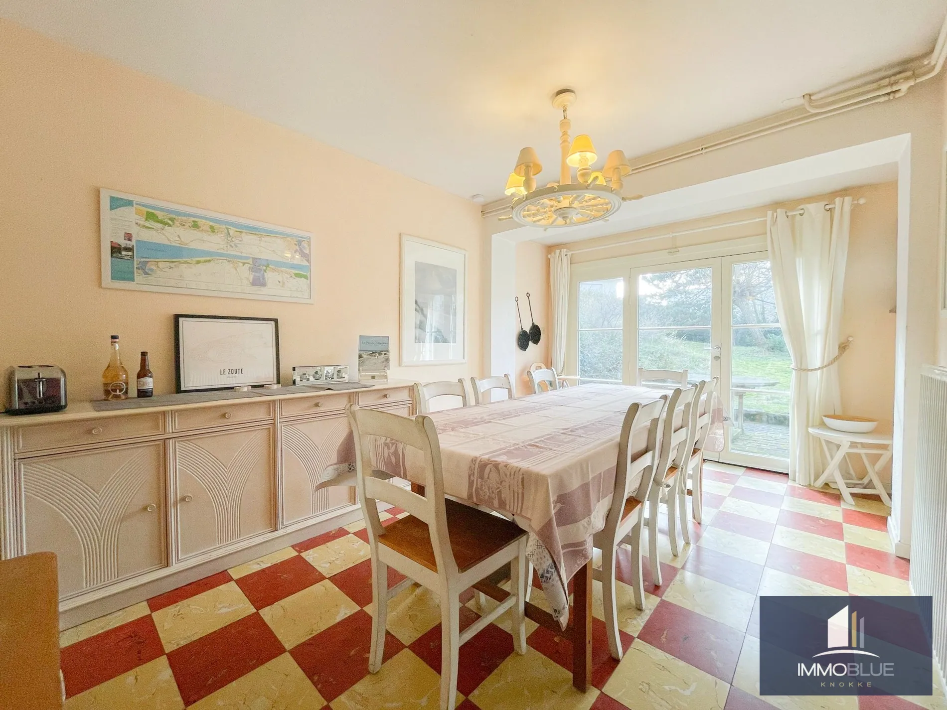 Authentieke duinenvilla gelegen in één van de paadjes in het Zoute op wandelafstand van de Zeedijk en de Kustlaan. Indeling: Inkomhall met gastentoilet. Aangename en lichtrijke woonkamer. Eetkamer met toegang tot de terras en de tuin. Keuken. Op het verdiep: 3 ruime slaapkamers. Badkamer met ligbad. Zolder. Kelder. Oprit met plaats voor 3 wagens. Prachtige tuin rondom de woning. Renovatieverplichting.