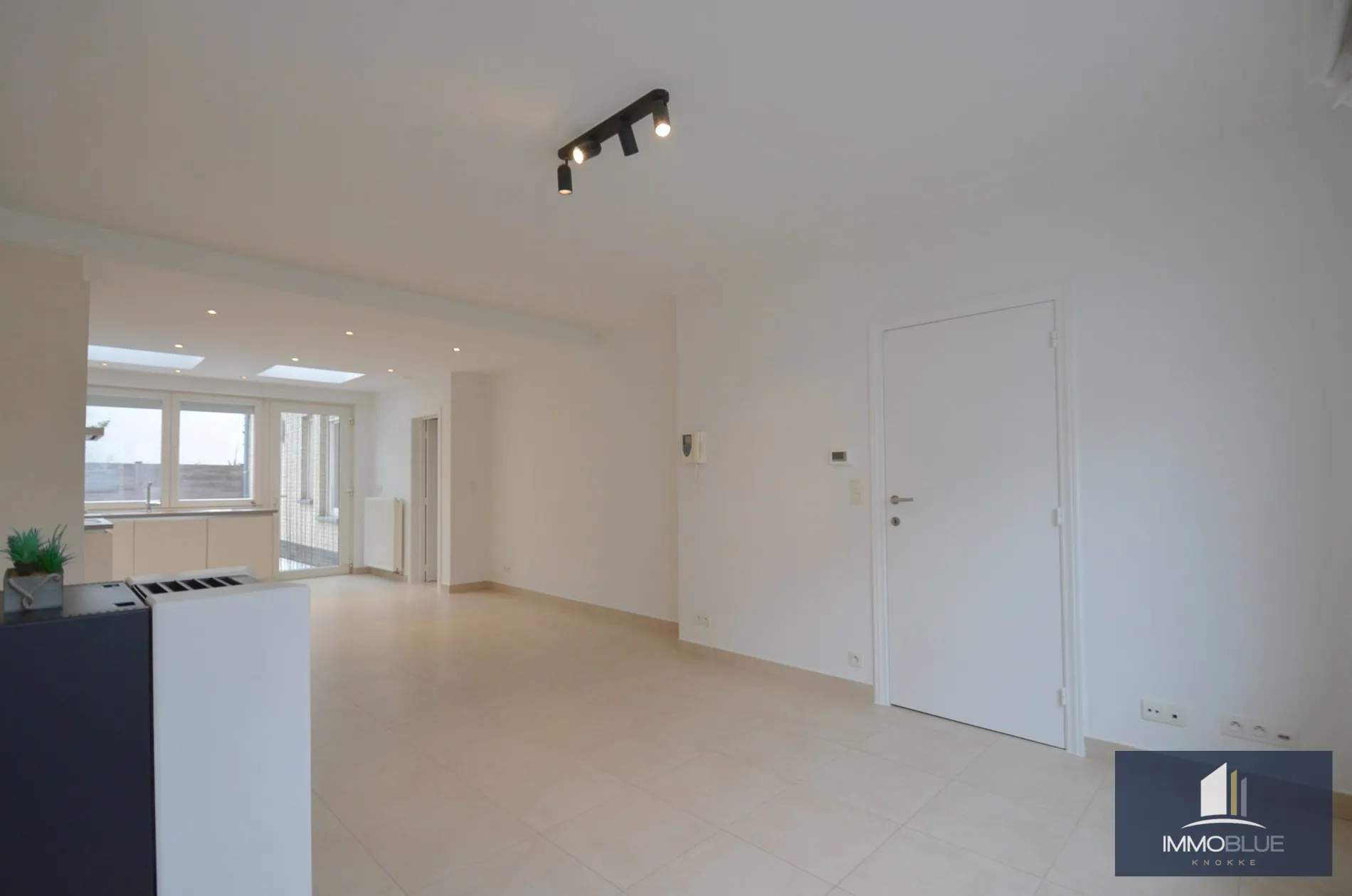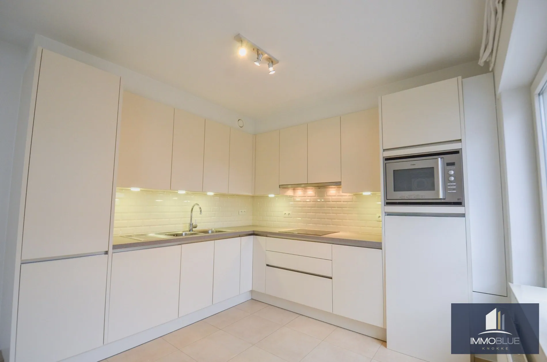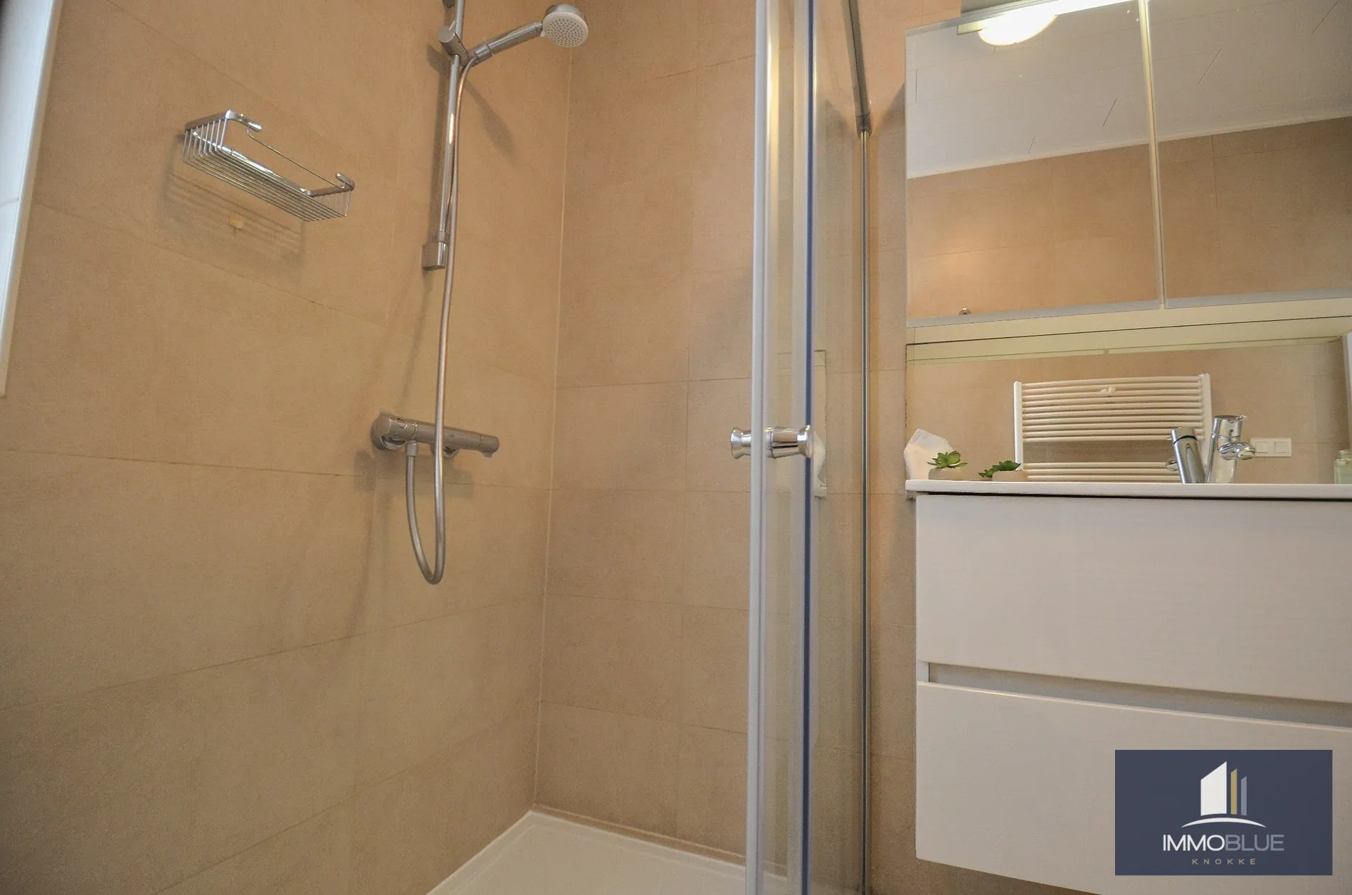 Aangename leefruimte met open keuken en toegang tot het terras. Daarnaast een slaapkamer met ingemaakte kasten en een badkamer voorzien van douche en lavabo.