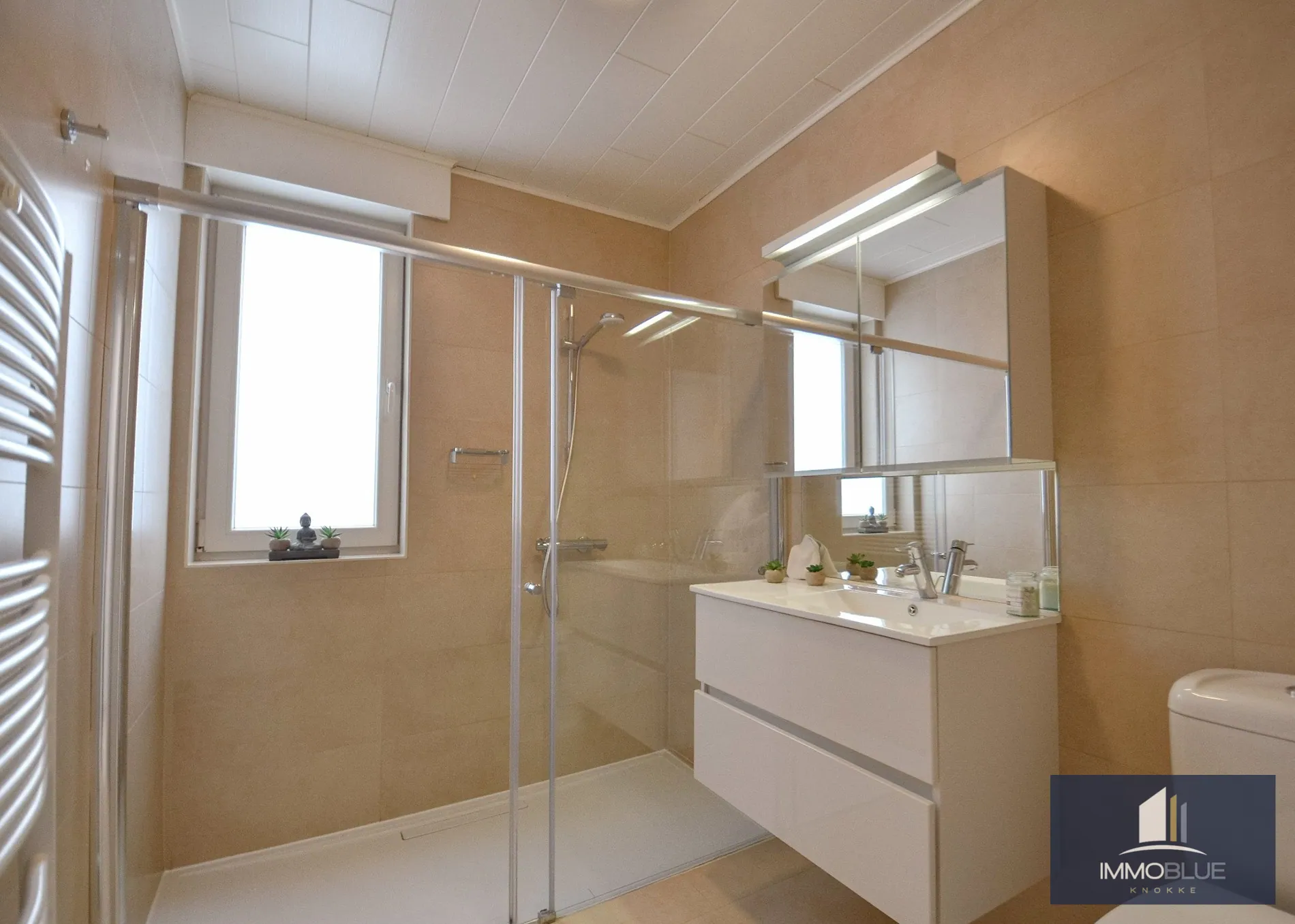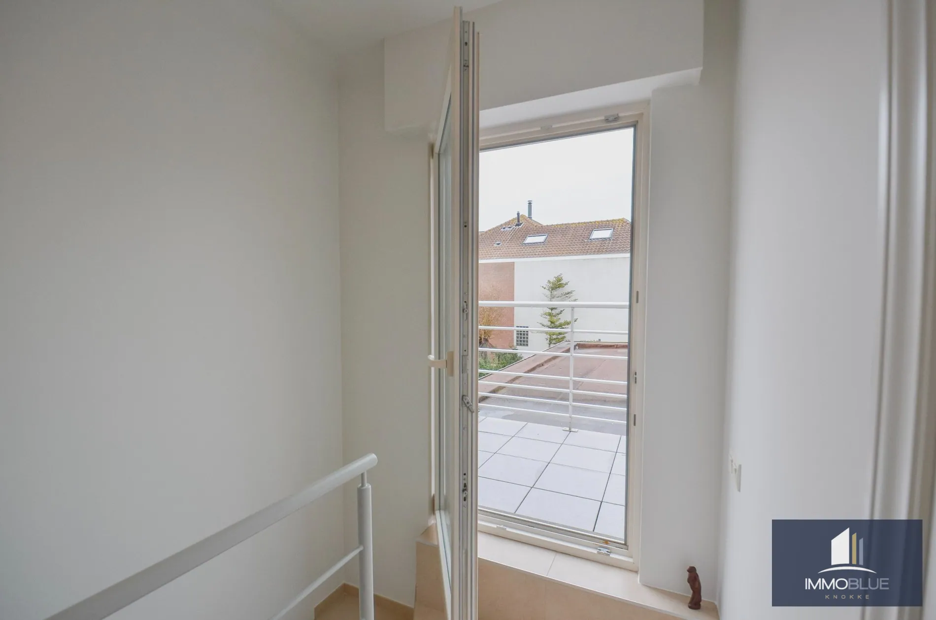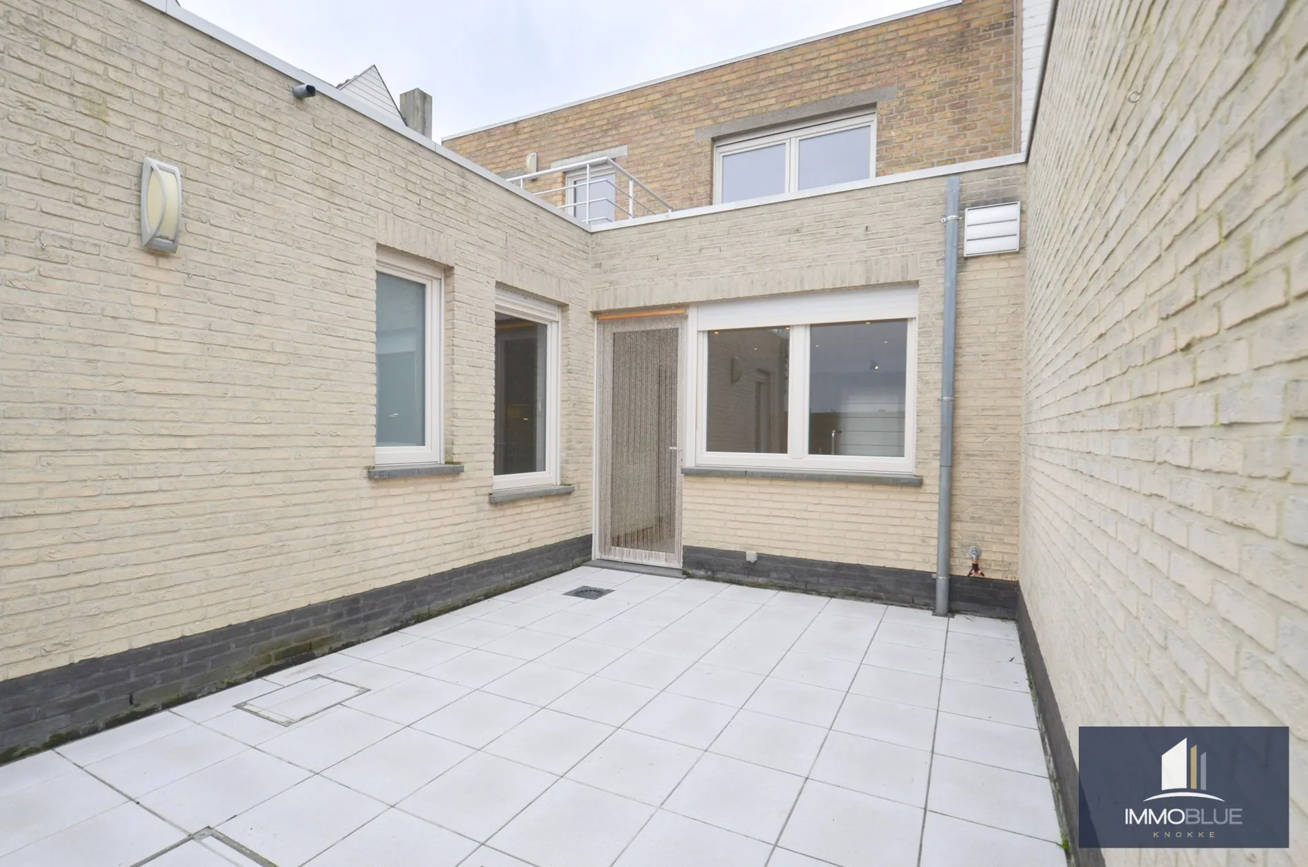 Aangename leefruimte met open keuken en toegang tot het terras. Daarnaast een slaapkamer met ingemaakte kasten en een badkamer voorzien van douche en lavabo.