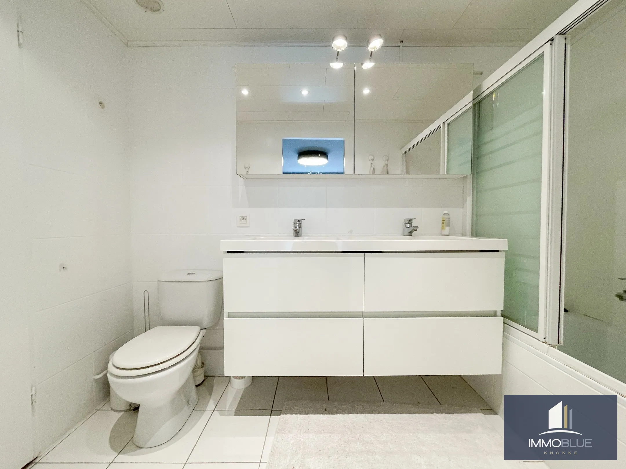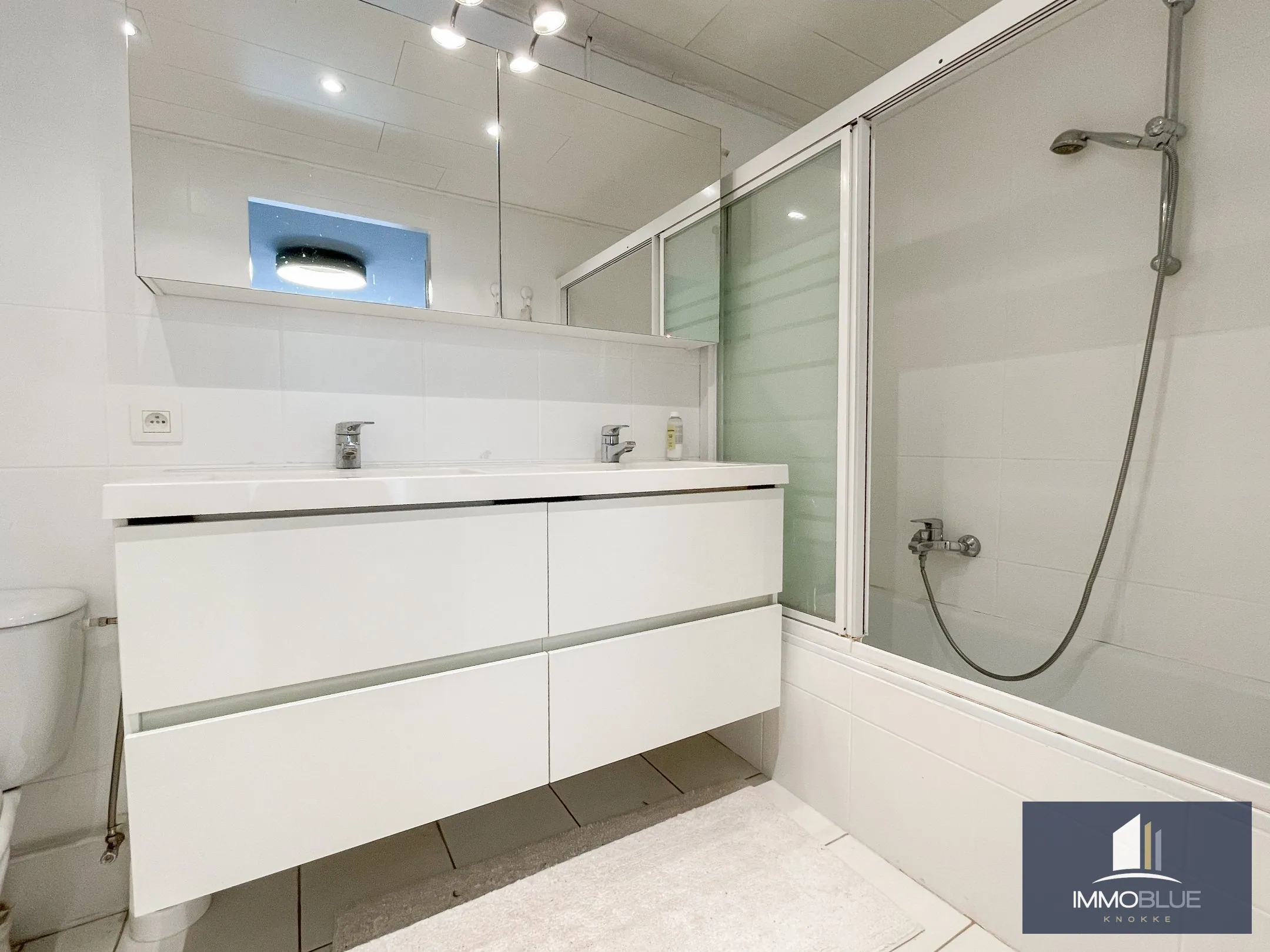 Grande chambre à l’avant avec accès à la terrasse et salle de bains attenante comprenant baignoire, double lavabo et un espace de rangement séparé pour machine à laver et sèche-linge. Deuxième et troisième chambre à coucher, toutes deux avec accès à la terrasse arrière. Salle de douche. Terrasse à l’arrière. Garage box tandem inclus à proximité de la résidence.