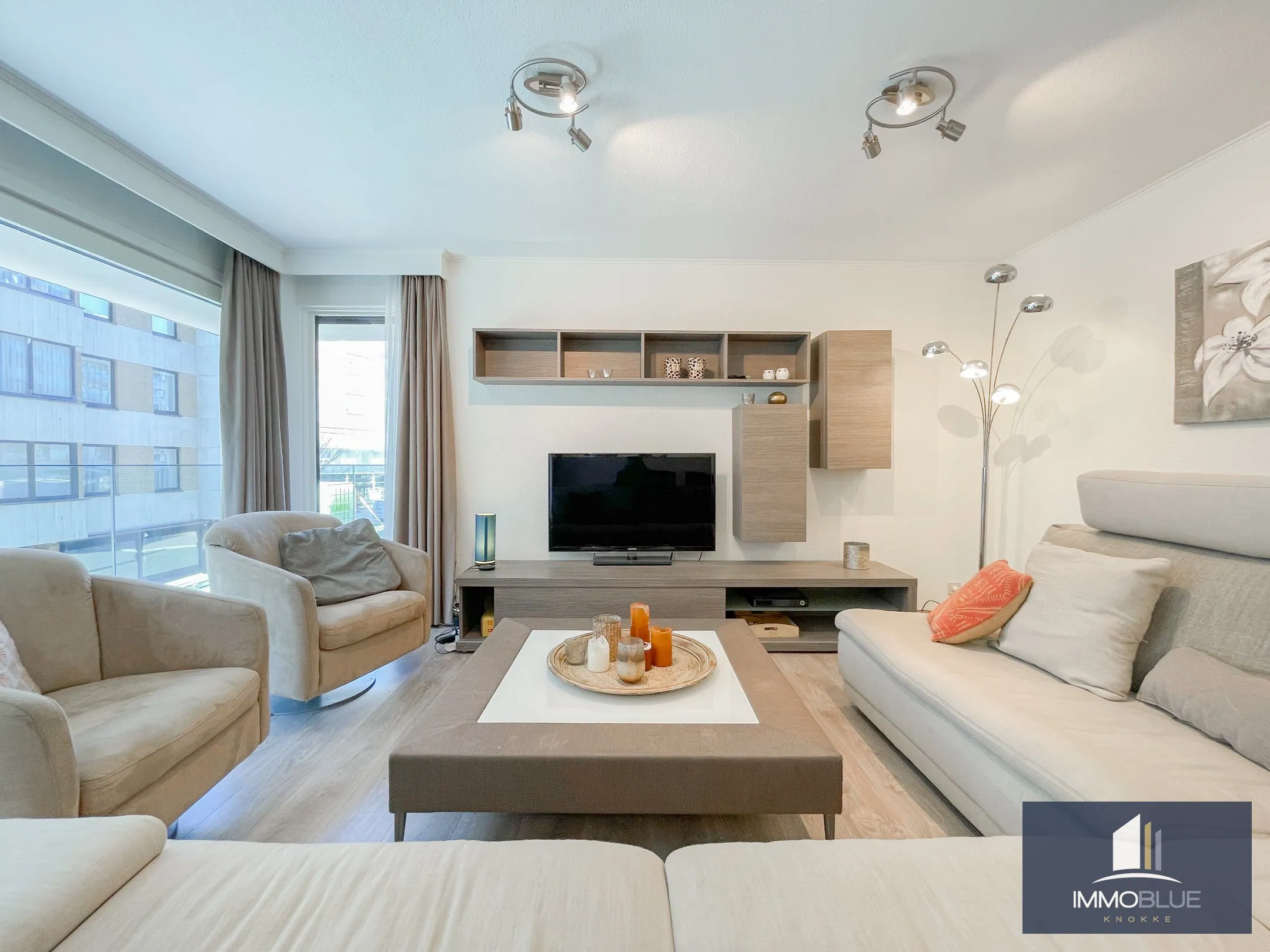 Hall d’entrée avec vestiaire et toilette invités. Spacieux et lumineux séjour avec accès à la terrasse et vue sur la Place du Phare. Cuisine entièrement équipée.