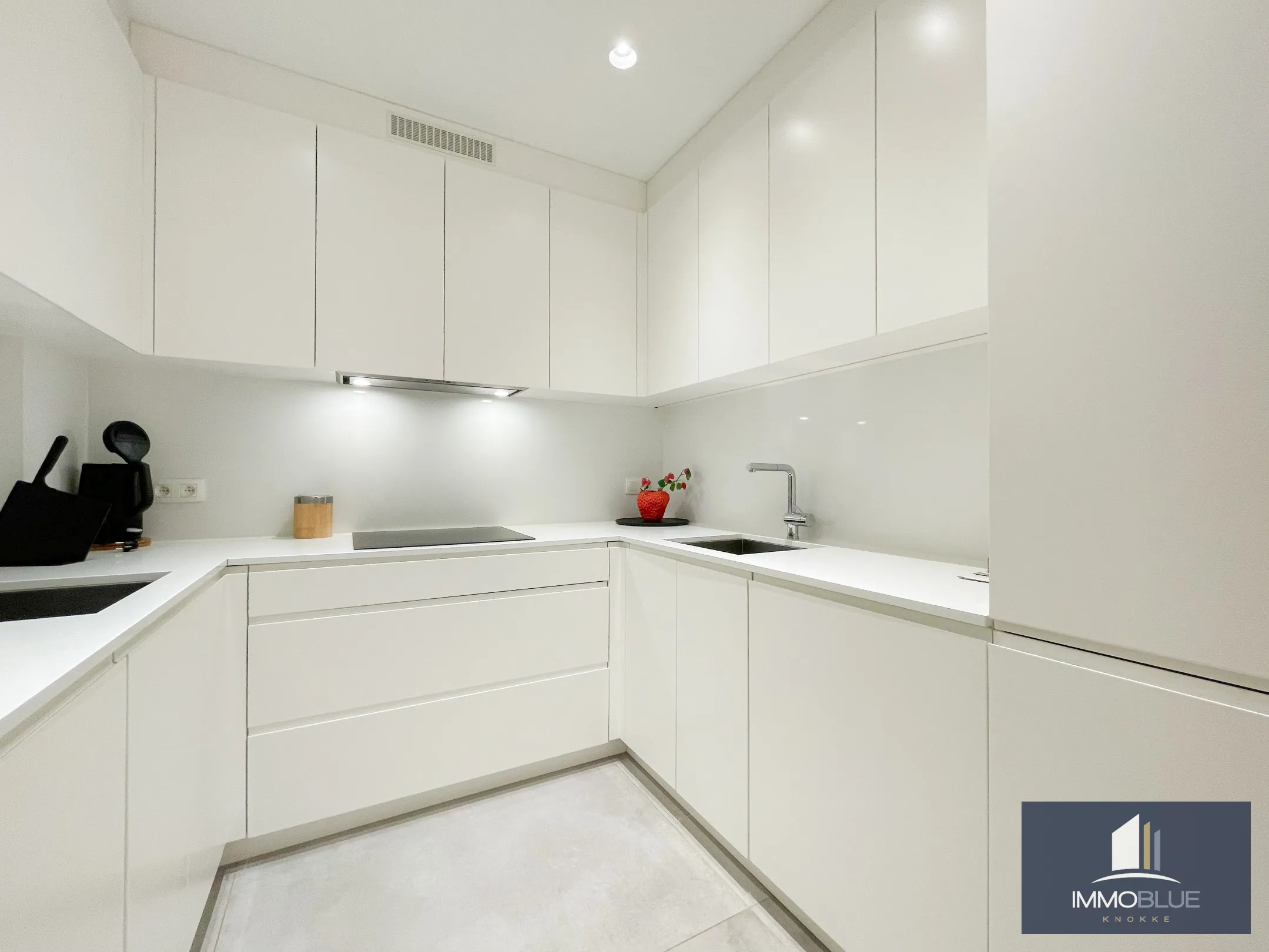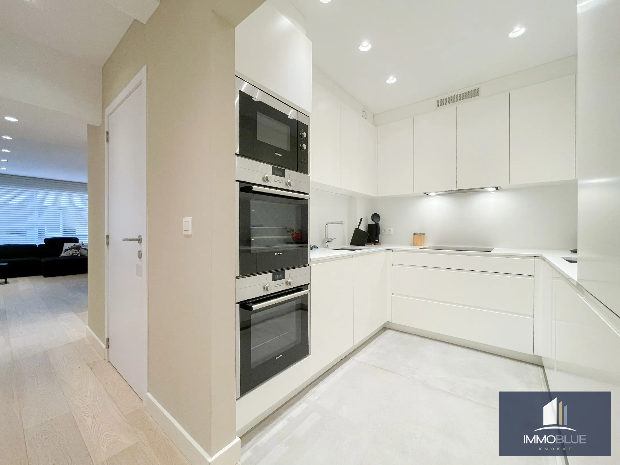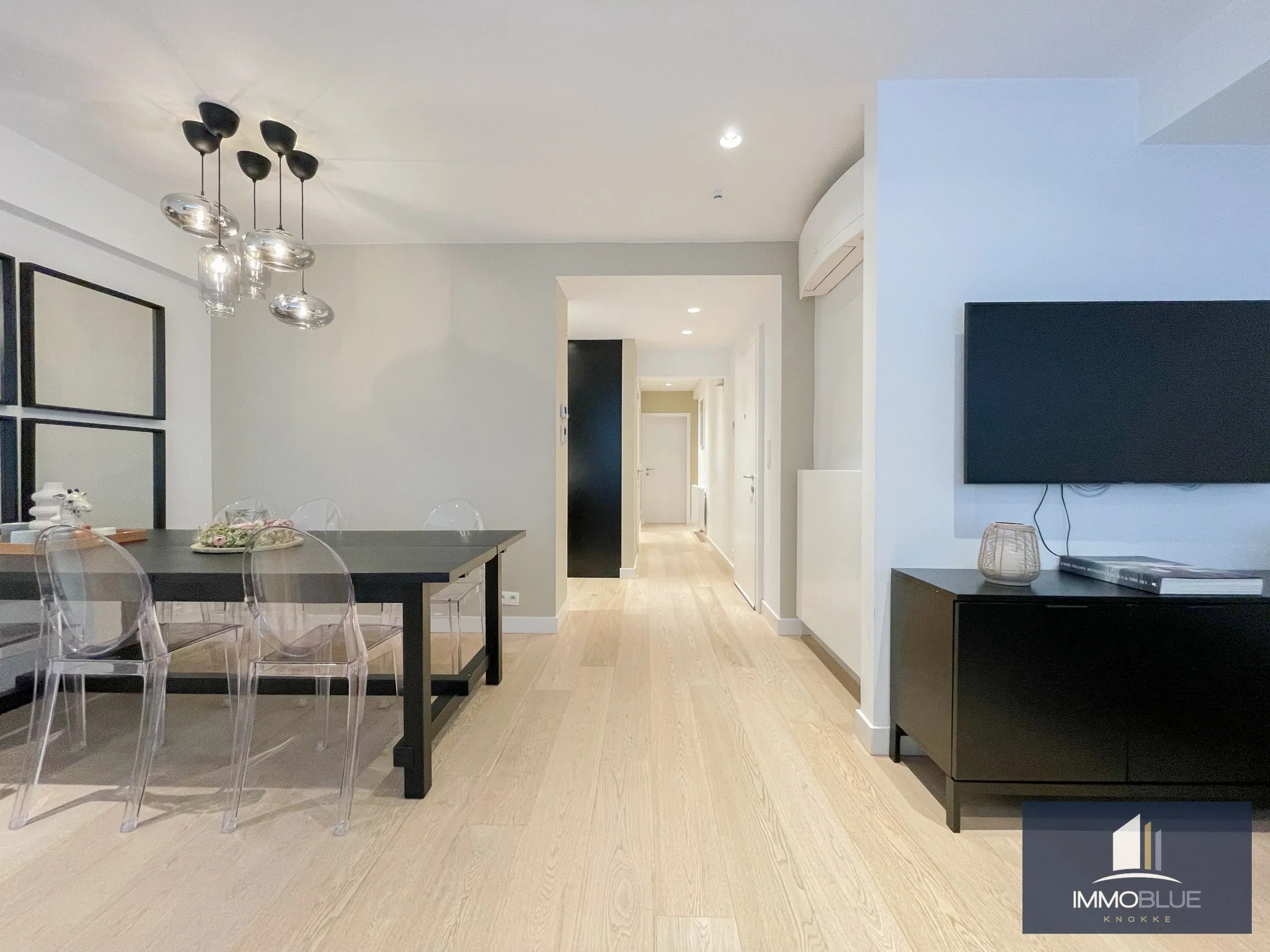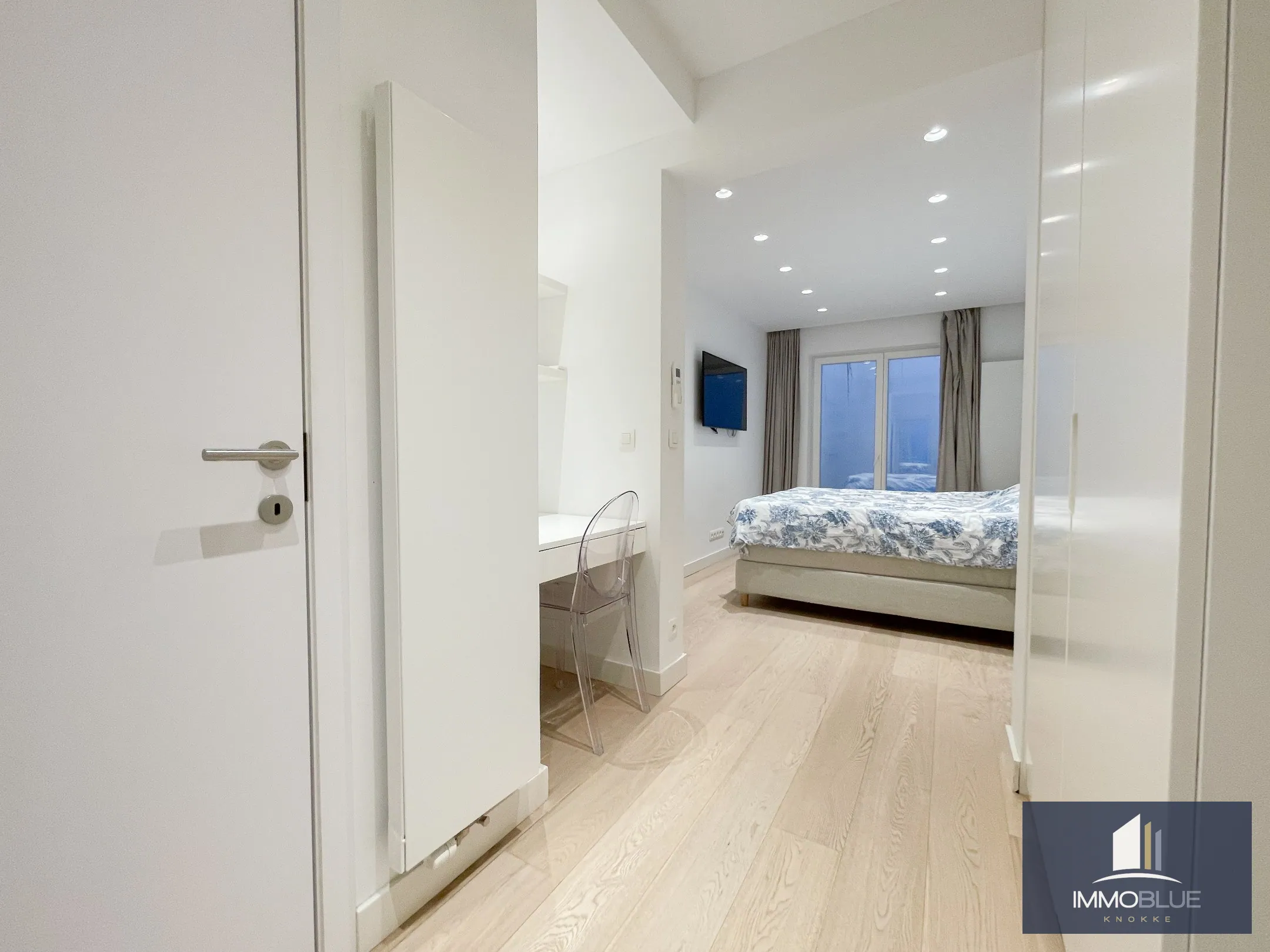 Appartement totalement rénové et luxueusement fini, avec trois chambres et une vue latérale sur la mer, situé au Zoute.