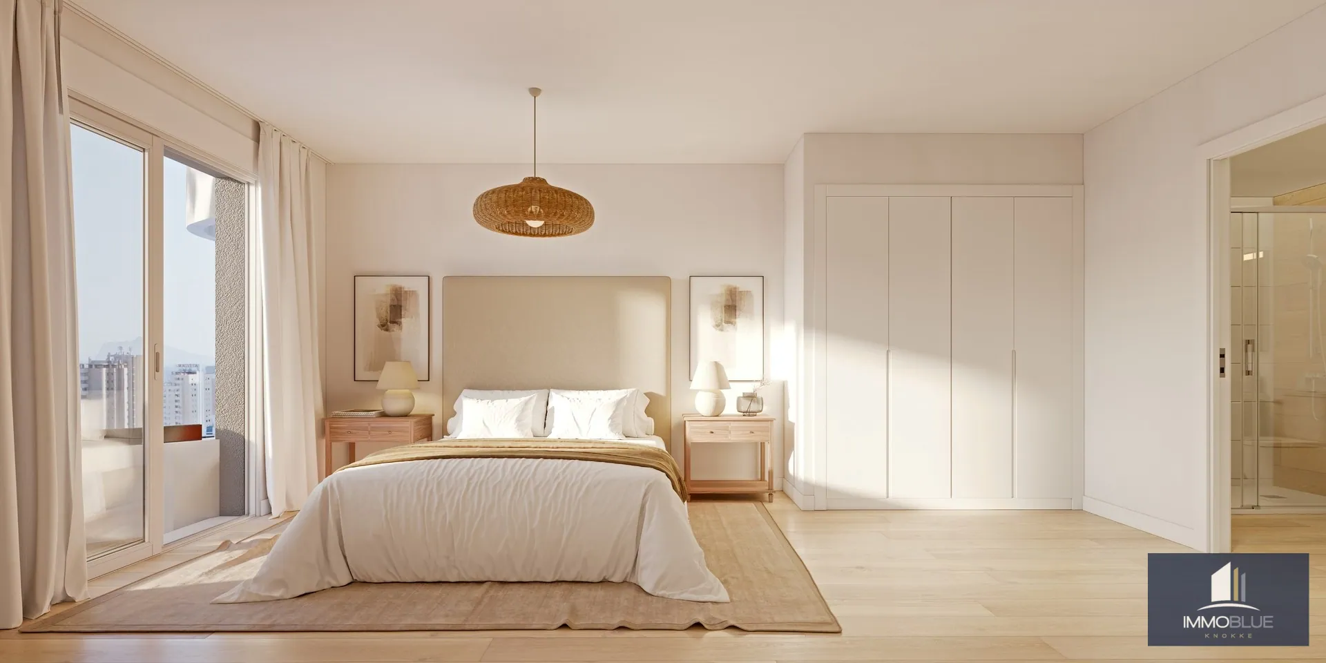 Les appartements de 2 chambres font environ 117 m² et disposent de grandes terrasses, idéales pour profiter du climat méditerranéen. Les appartements de 3 chambres mesurent environ 147 m² et possèdent également de vastes terrasses. Tous les logements sont conçus avec des espaces ouverts et lumineux, et des finitions de haute qualité, incluant cuisines modernes, salles de bains luxueuses et placards intégrés.
