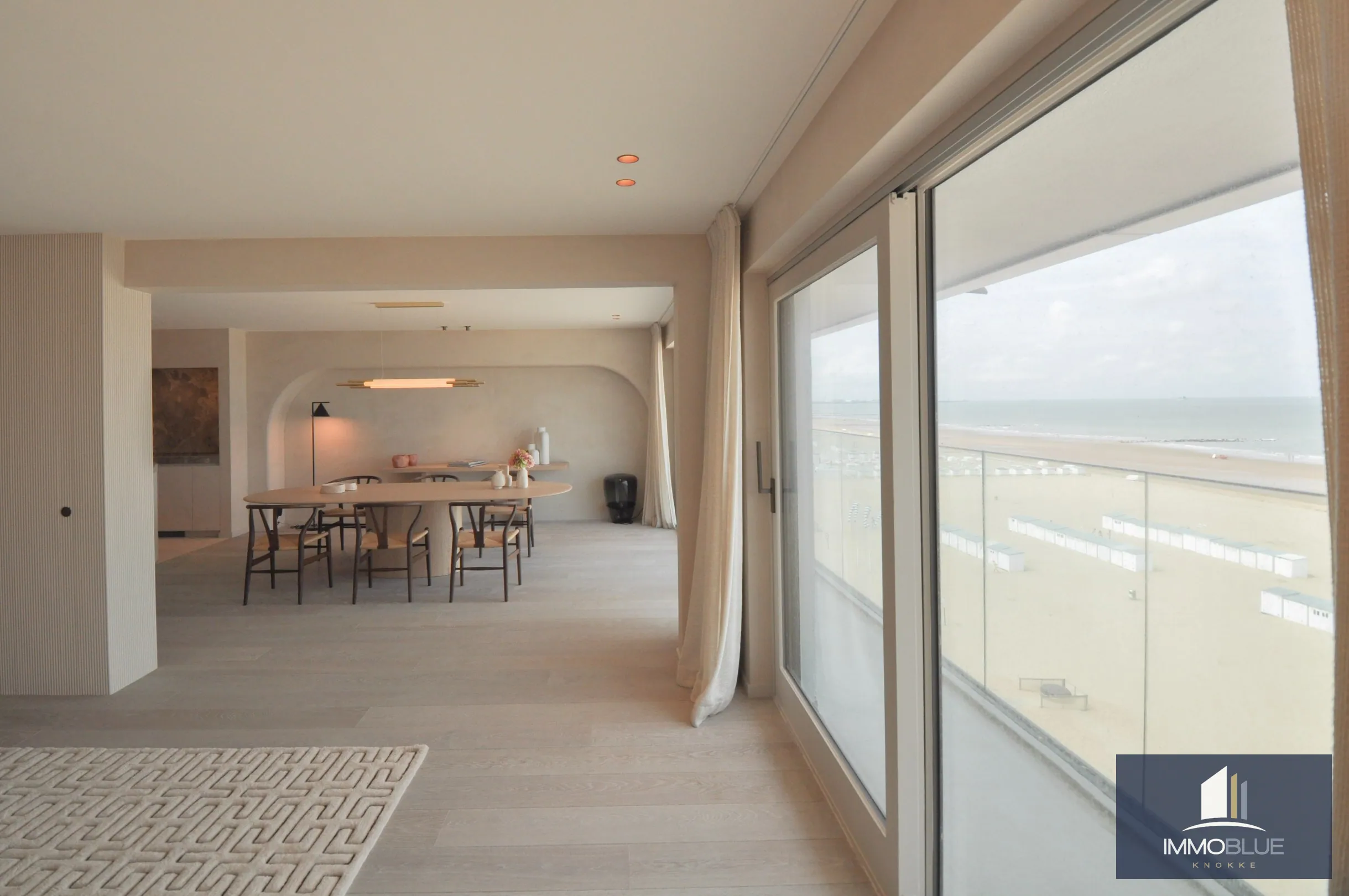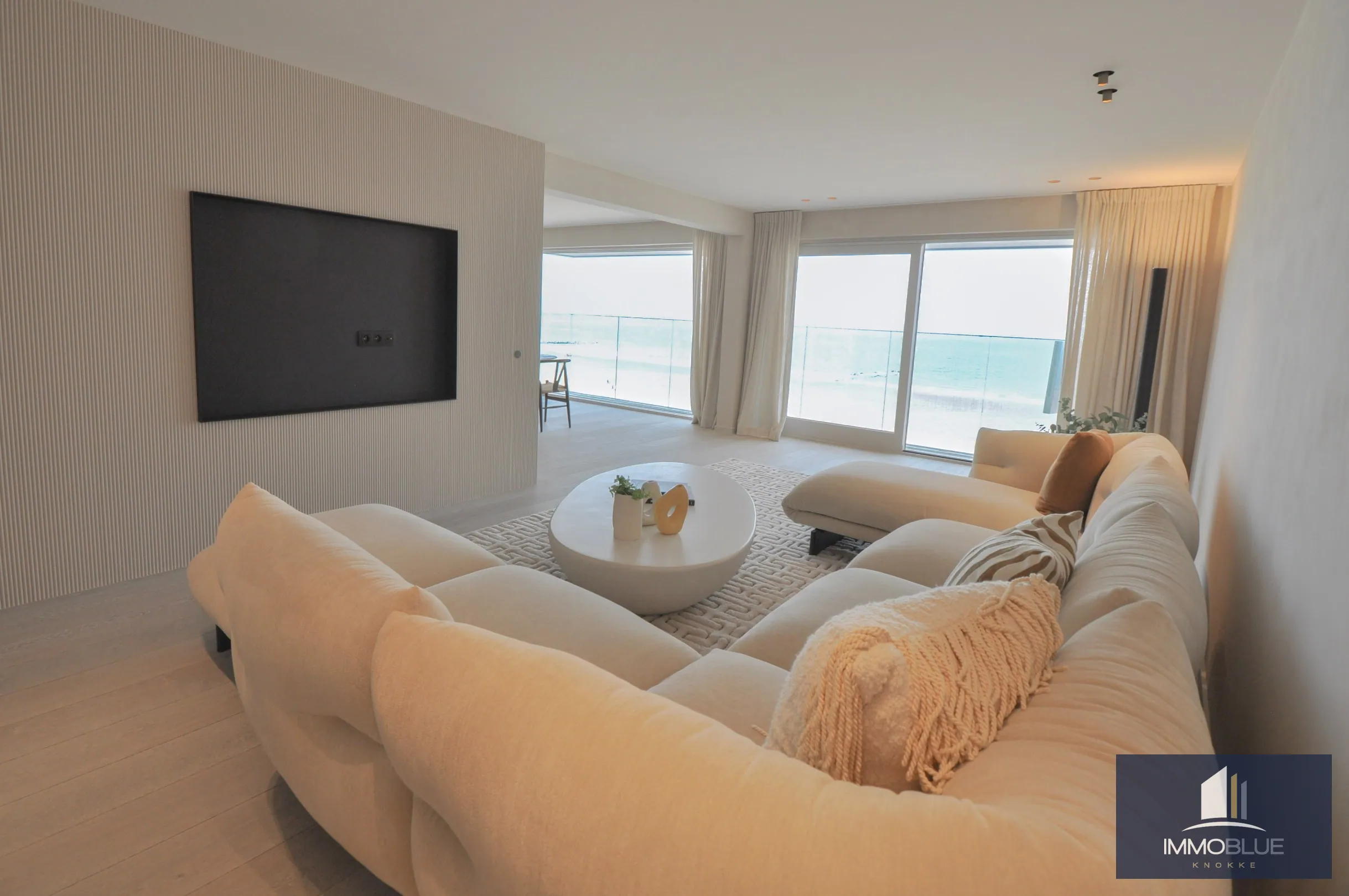Le spacieux séjour donne sur la terrasse en façade et offre une vue splendide sur la mer.
