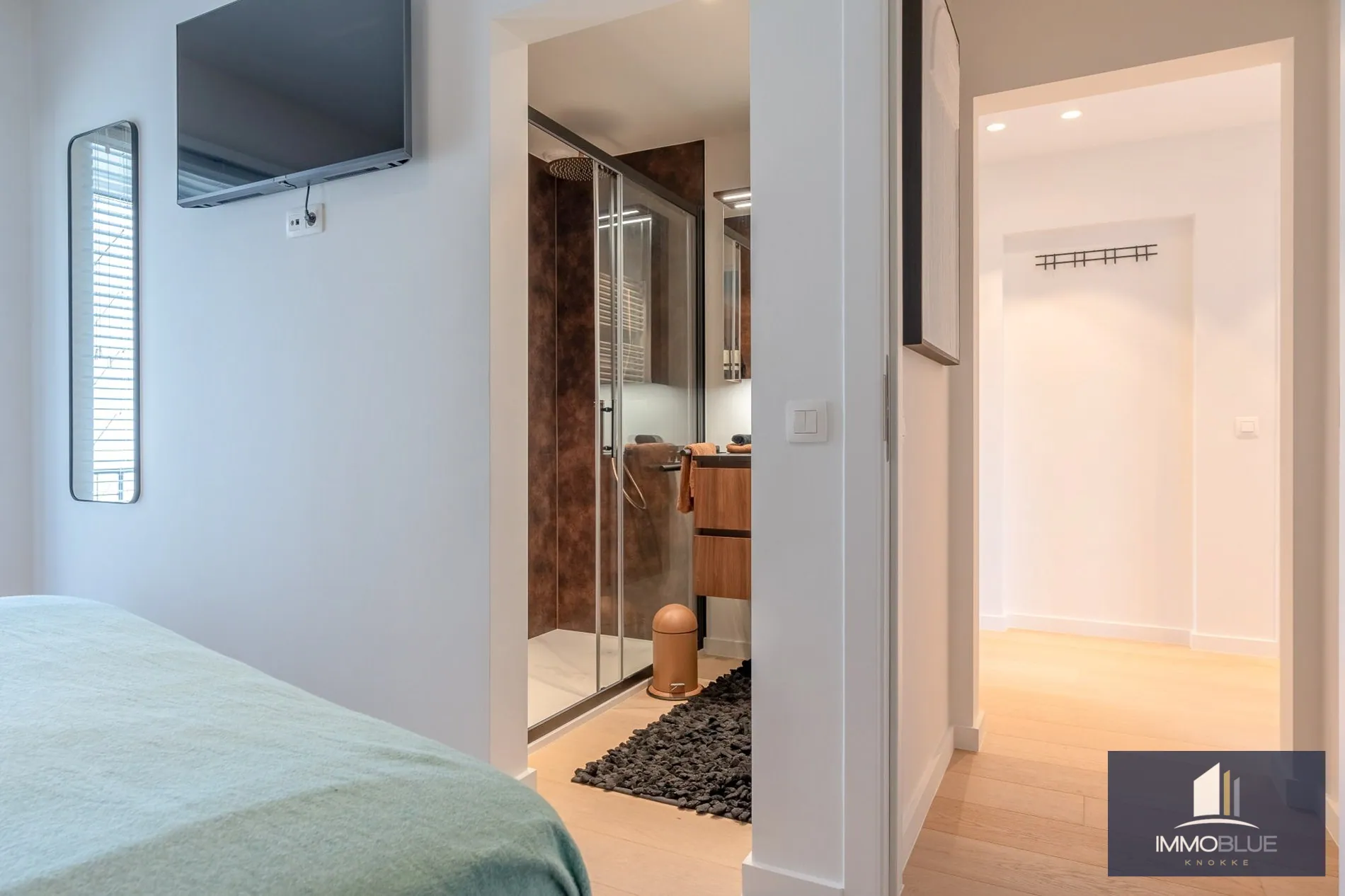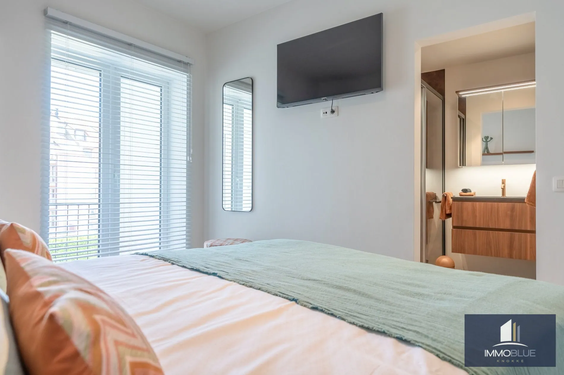 Situé dans un endroit calme, cet appartement entièrement rénové offre une vue dégagée sur les villas. Composition : Entrée avec toilettes. Espace de vie lumineux permettant de profiter d'une vue ouverte sur les villas. Cuisine entièrement équipée. Deux chambres à coucher complètes avec placards intégrés et leur propre salle de douche. Les deux chambres donnent sur la terrasse à l'arrière, équipée d'un espace de rangement. Une spacieuse cave privée et un local à vélos commun dans la résidence.