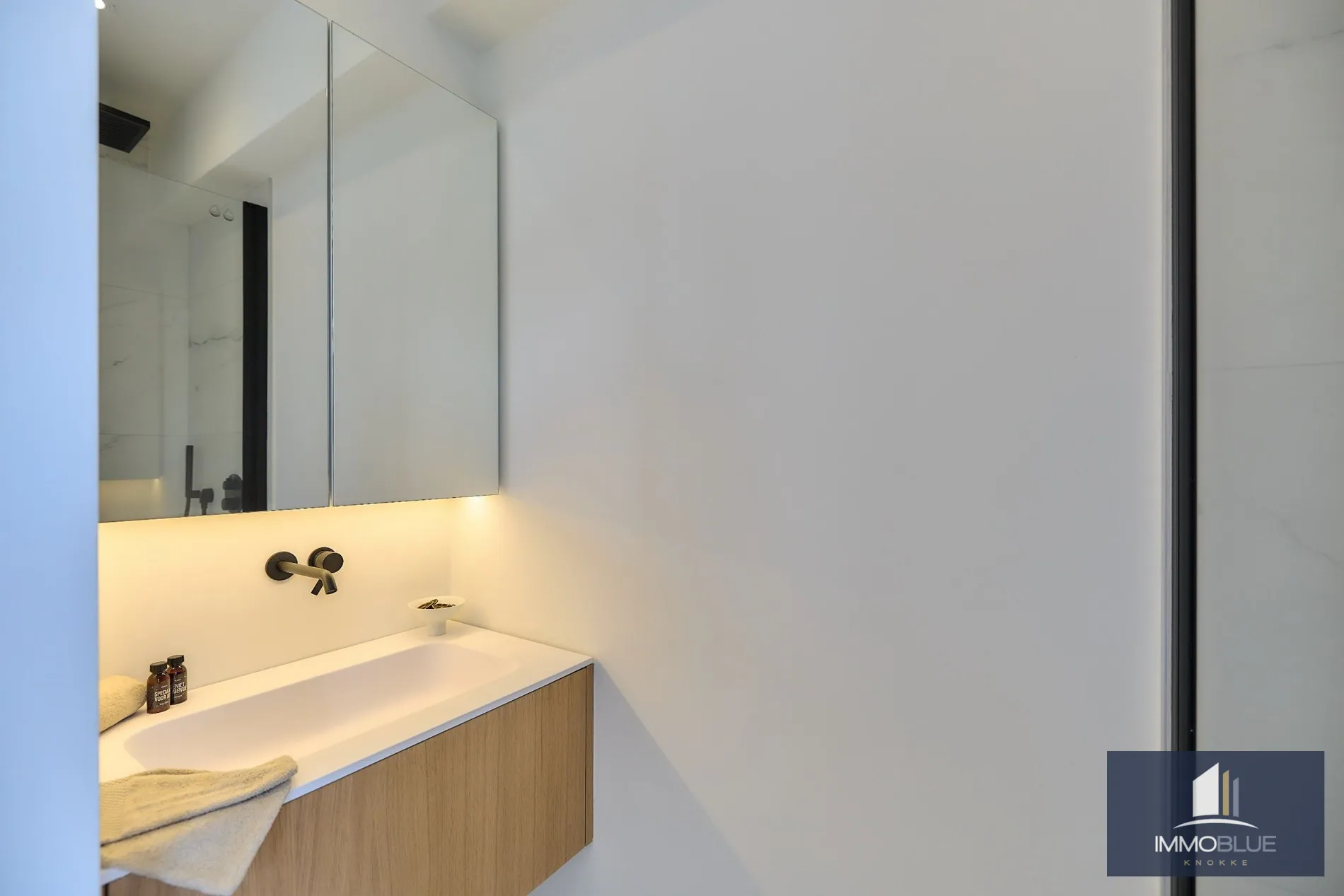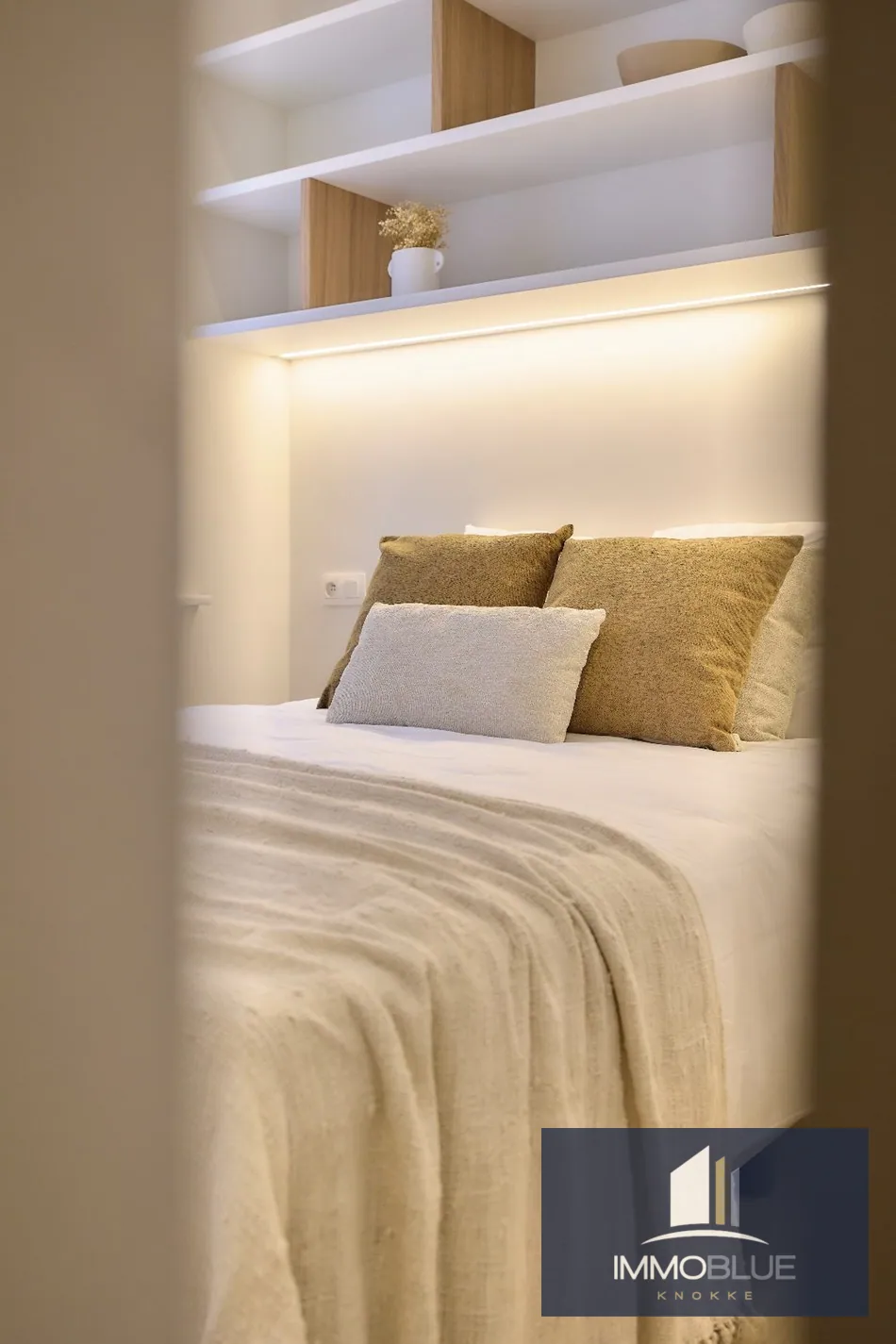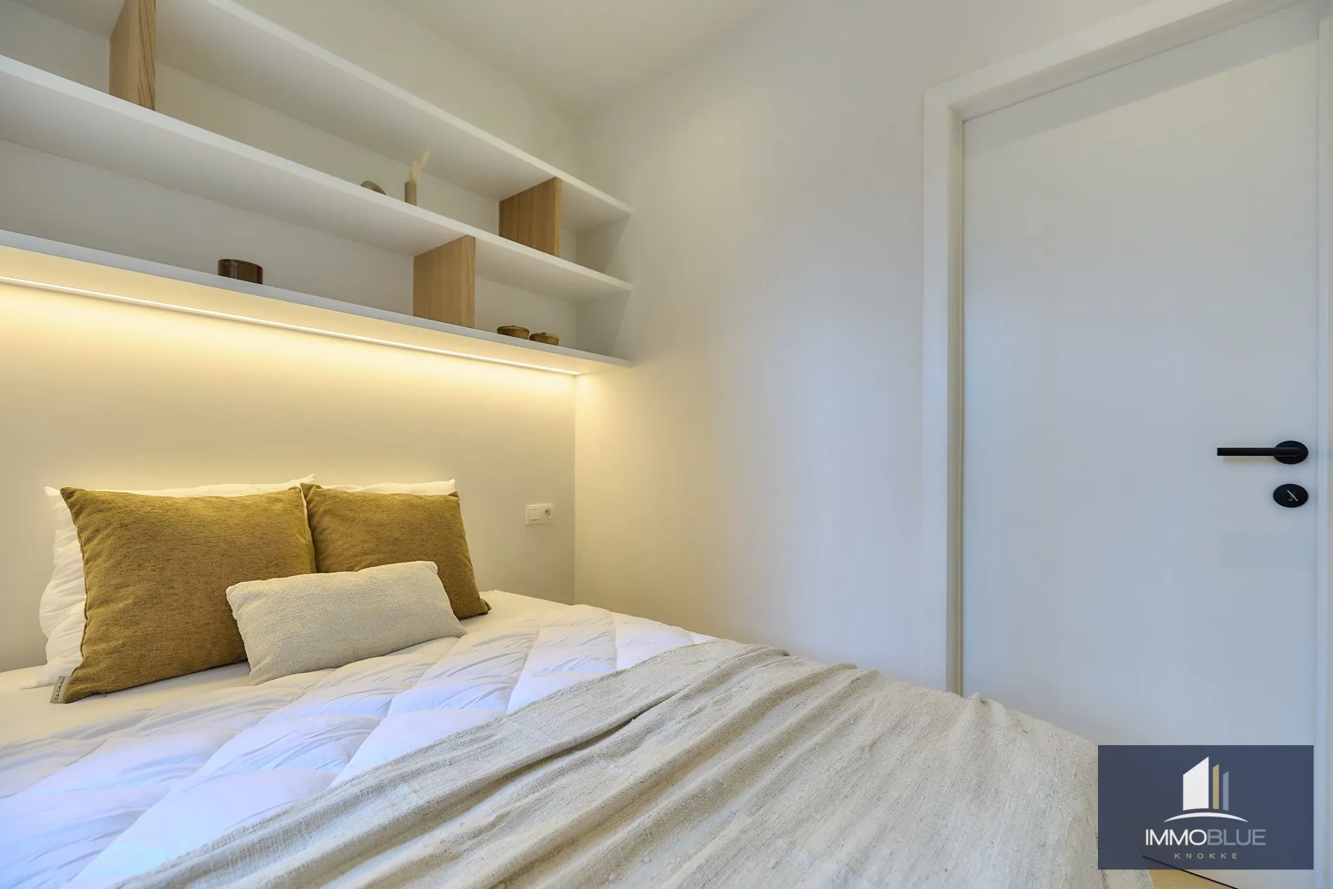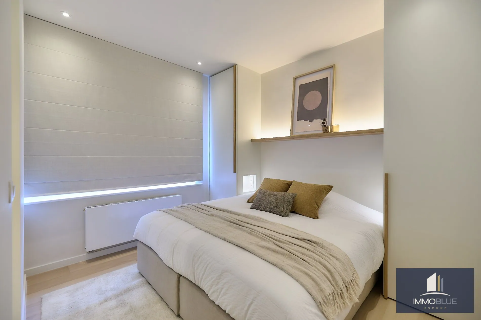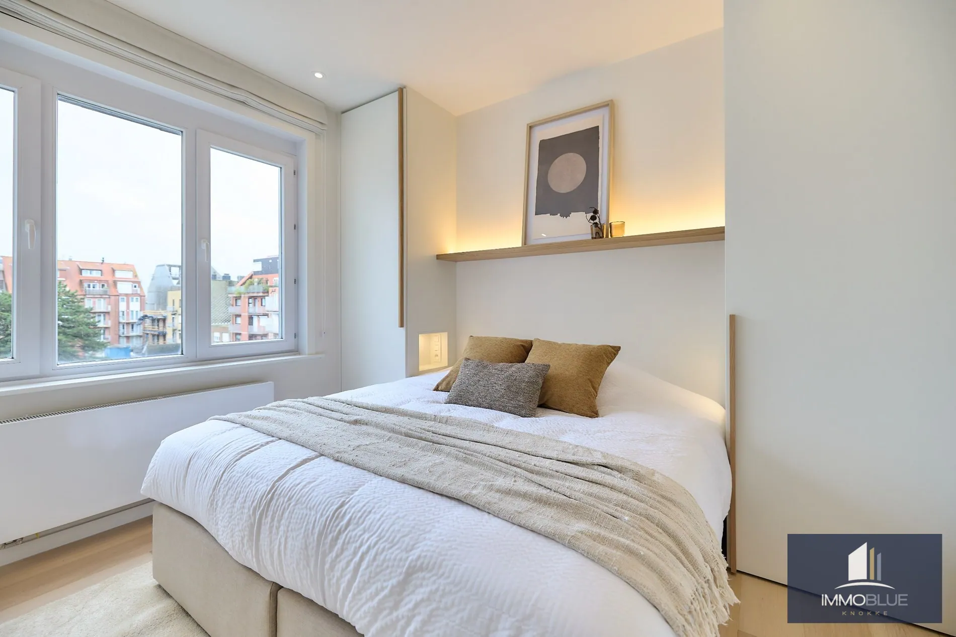 Appartement spacieux, entièrement rénové, avec quatre chambres et vue latérale sur la mer, situé à proximité de la Place Van Bunnen.